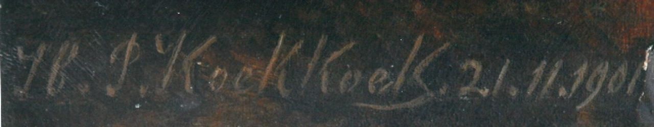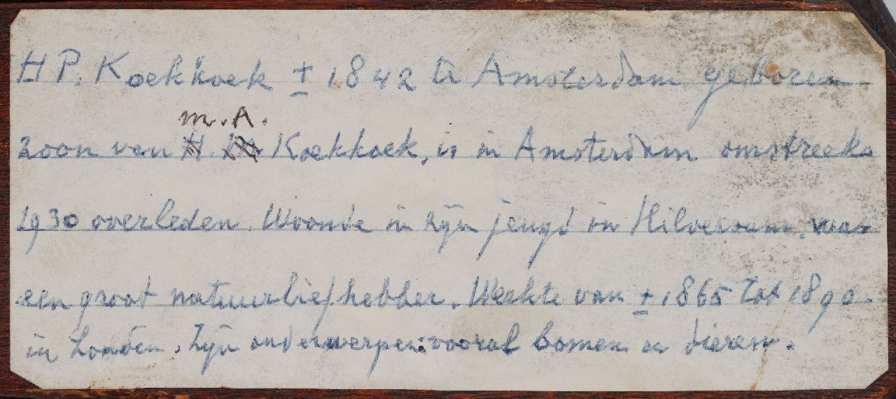 Pieter Hendrik Koekkoek was de zoon van de landschapschilder M.A. Koekkoek en behoorde tot de derde generatie Koekkoek-schilders. De invloed van zijn vader is duidelijk zichtbaar in zijn weidse romantische landschappen met imposante boompartijen, nietige figuurtjes en vee. Hij woonde en werkte in Amsterdam, en ook enige tijd (tussen ca. 1865 en 1890) in Londen, waar zijn neef Hermanus jr een kunsthandel had. Pieter Hendrik moet een groot natuurliefhebber geweest zijn en signeerde zijn schilderijen doorgaans met 'H.P. Koekkoek'.