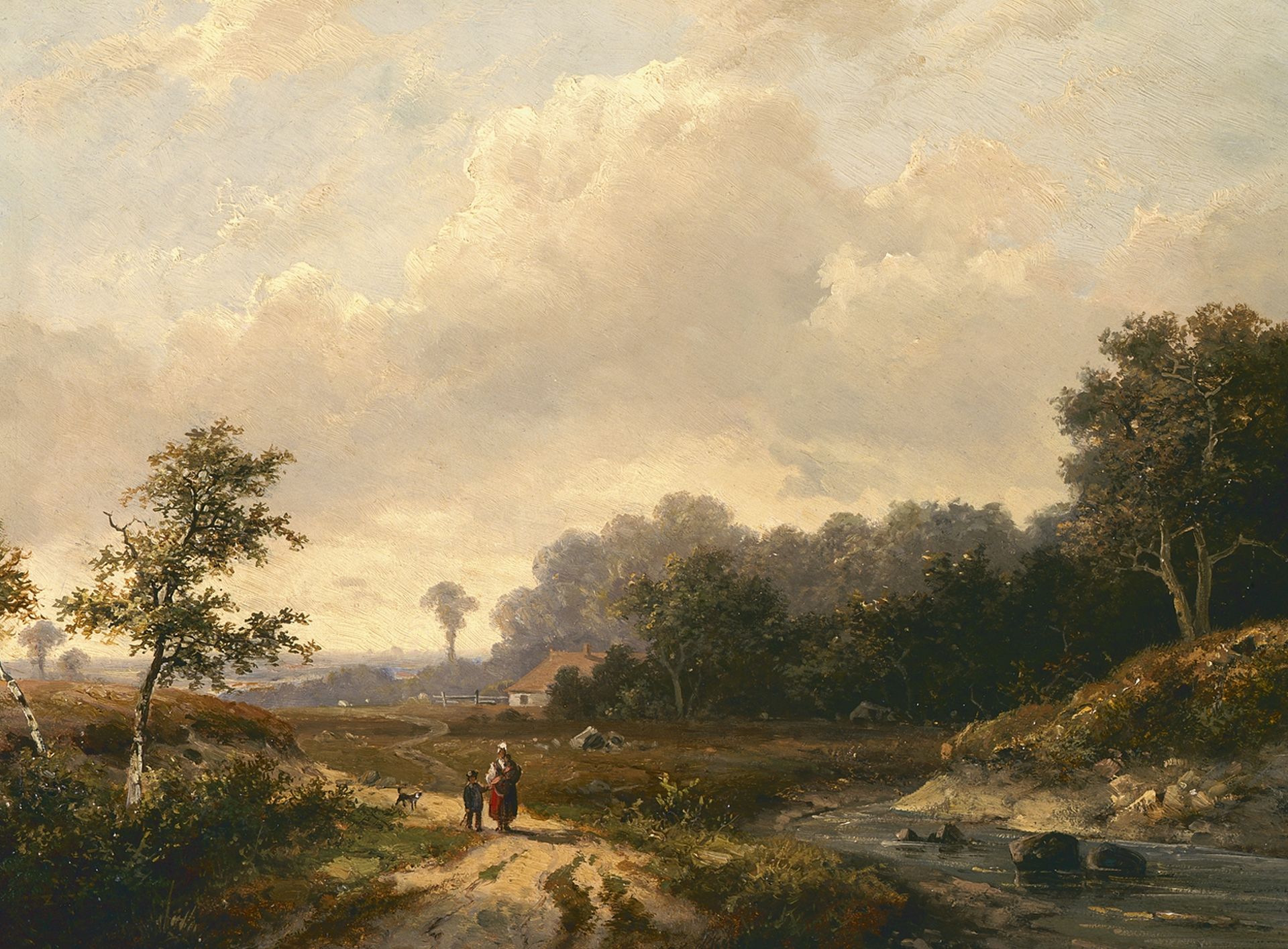 Hendrik Pieter Koekkoek kunstwerk • schilderij • voorheen te koop Wandeling door panoramisch landschap