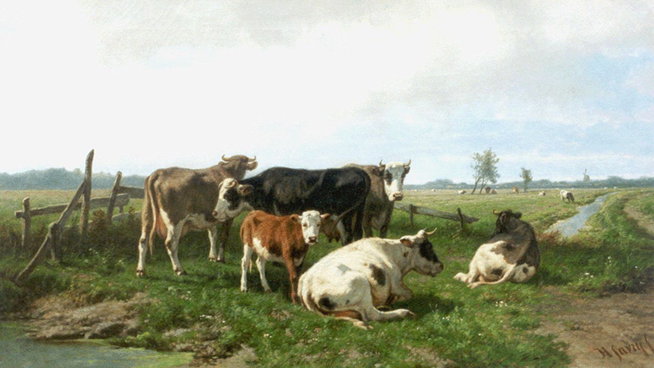 De talentvolle schilder van veestukken Hendrik Savrij was de zoon en leerling van de stillevenschilder Martinus Savrij in Haarlem. In deze stad werd hij in 1823 geboren en is hij tot aan zijn dood in 1907 blijven wonen. Ook zijn zuster, Cornelia Johanna was schilderes en later zou ook zijn zoon, Henri Savrij, naam maken als schilder van landschappen met vee. Met het schilderen van kunstzinnig geschikt, mooi gemodelleerd vee in Hollandse weidelandschappen, zette Hendrik Savrij een traditie voort die in de 17de eeuw met schilders als Albert Cuyp en Paulus Potter was begonnen. Tijdgenoten waren onder andere de Haagse veeschilders Pieter Stortenbeker en Jan de Haas. Musea: o.a. Teylers Museum in Haarlem en Haags Gemeentemuseum