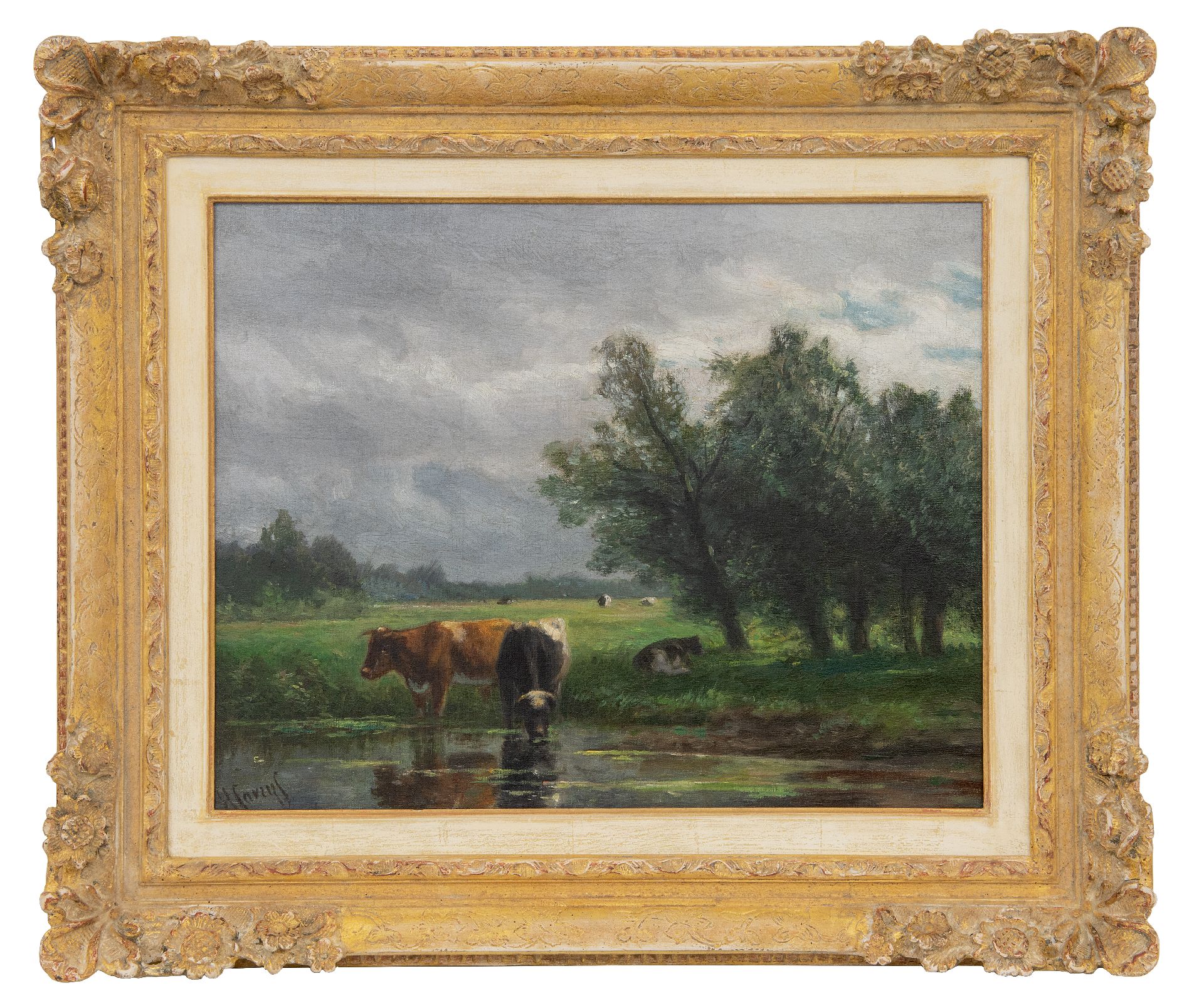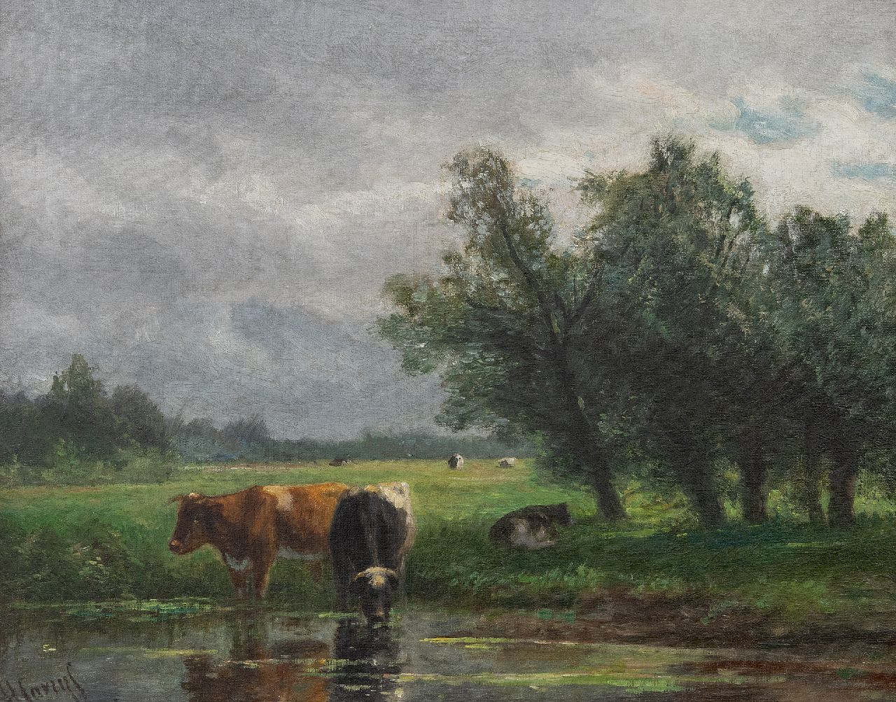 Hendrik Savrij kunstwerk • schilderij • voorheen te koop Koeien aan de slootkant