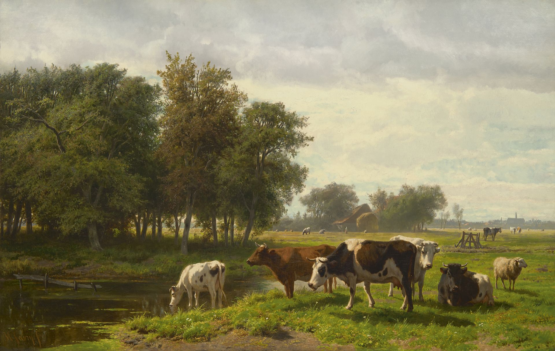 Hendrik Savrij kunstwerk • schilderij • voorheen te koop Polderlandschap met vee, bij Haarlem