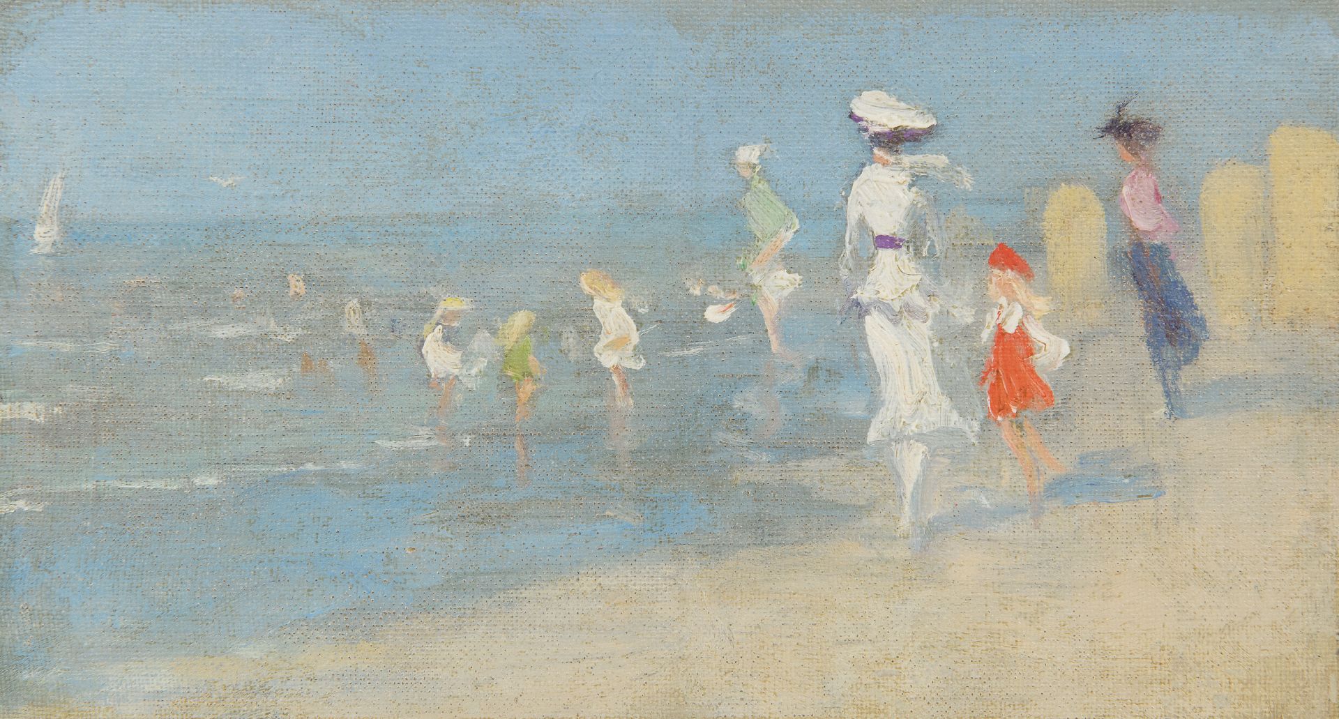 Hendrik Steenwijk kunstwerk • schilderij • voorheen te koop Strandgezicht met badgasten
