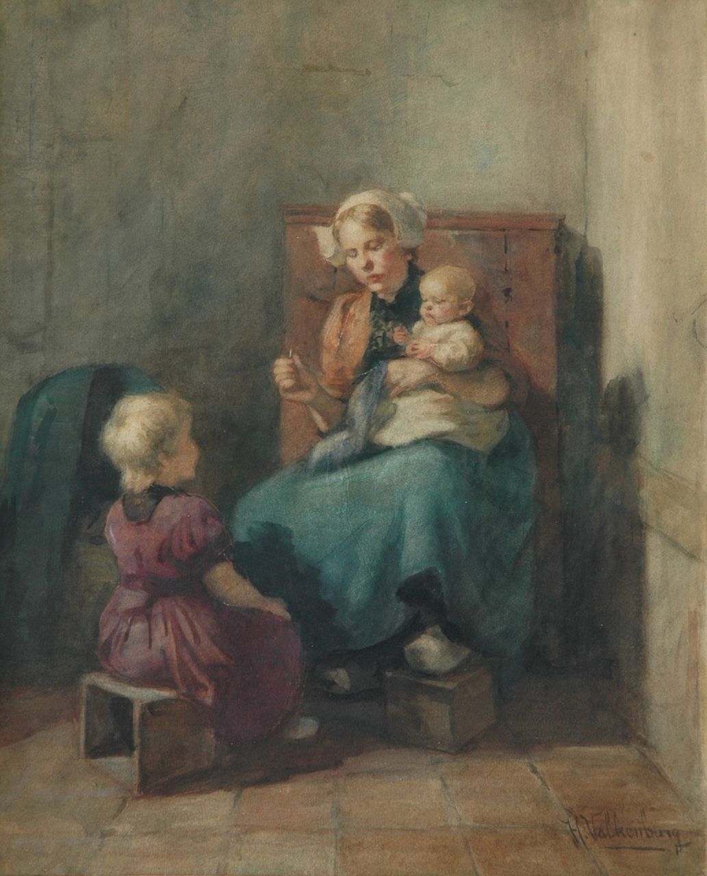 Hendrik Valkenburg kunstwerk • aquarel • tekening • voorheen te koop De jonge moeder