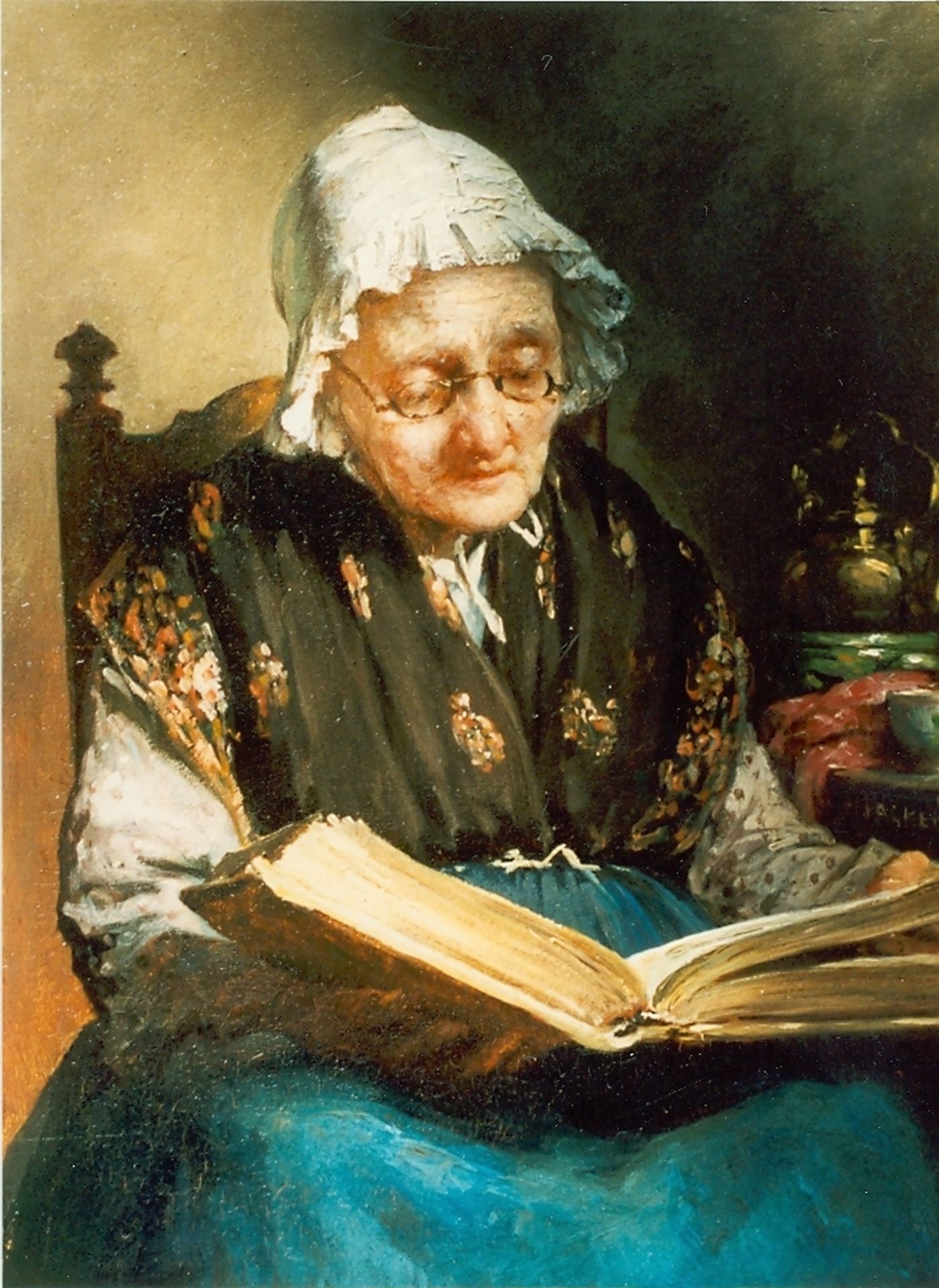 Hendrik Valkenburg kunstwerk • schilderij • voorheen te koop Lezende vrouw in de bijbel