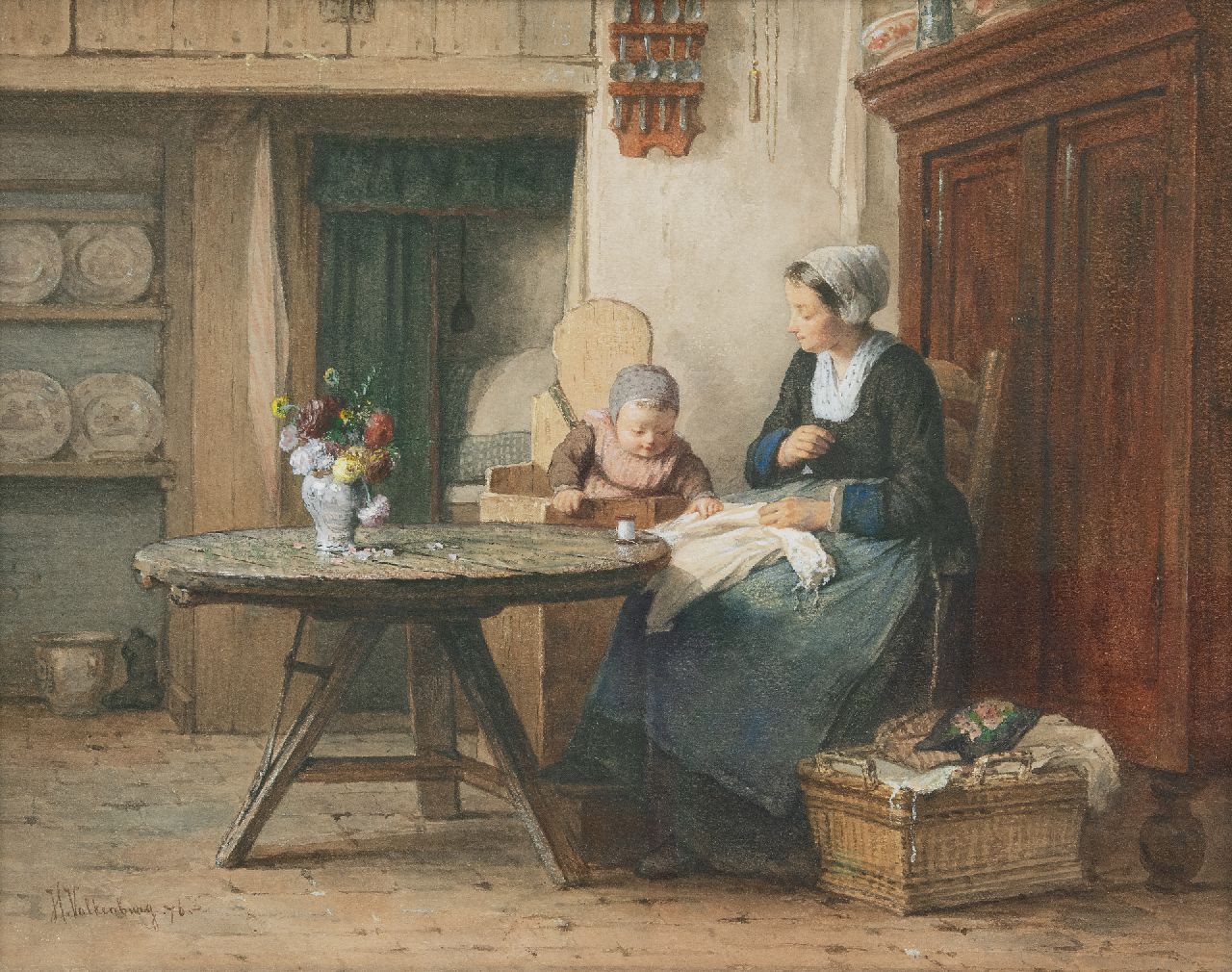 Hendrik Valkenburg kreeg zijn eerste tekenlessen op de Tekenschool in Deventer en daarna op de Academie in Antwerpen. Hij schilderde genrestukken, waaronder vissers in Zandvoort, enkele landschappen en boeren-interieurs in Twente en in het Gooi. Na 1873 werkte hij vooral in en rond het Gooise dorp Laren. De boerentaferelen die hij in zijn ‘Larense periode' schilderde vallen op door hun intieme sfeer, hun bijzondere lichtval en hun rijke koloriet. Musea: o.a. Teylers Museum in Haarlem, Centraal Museum in Utrecht en Kröller Müller Museum in Otterlo.