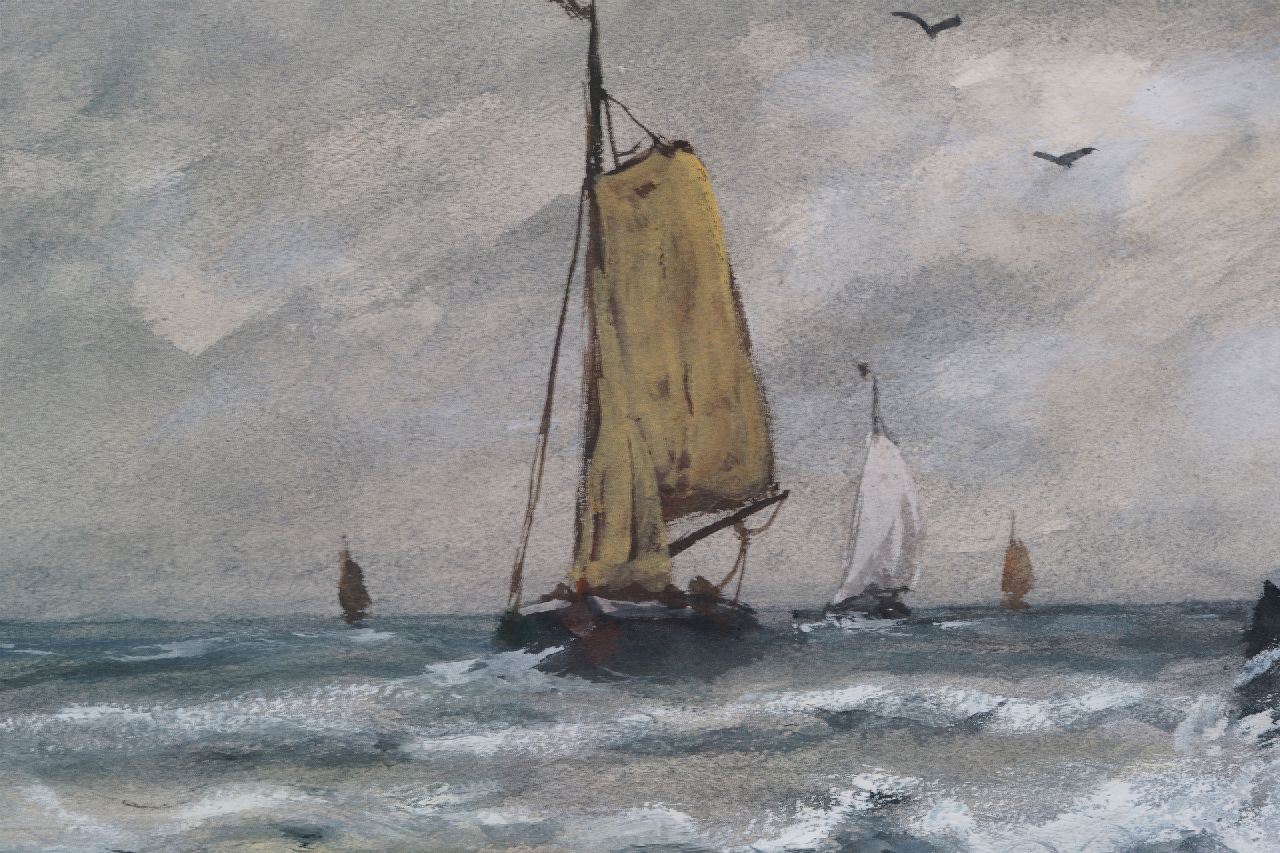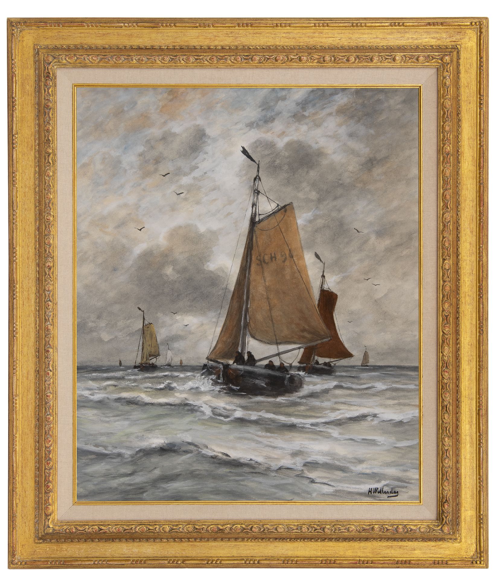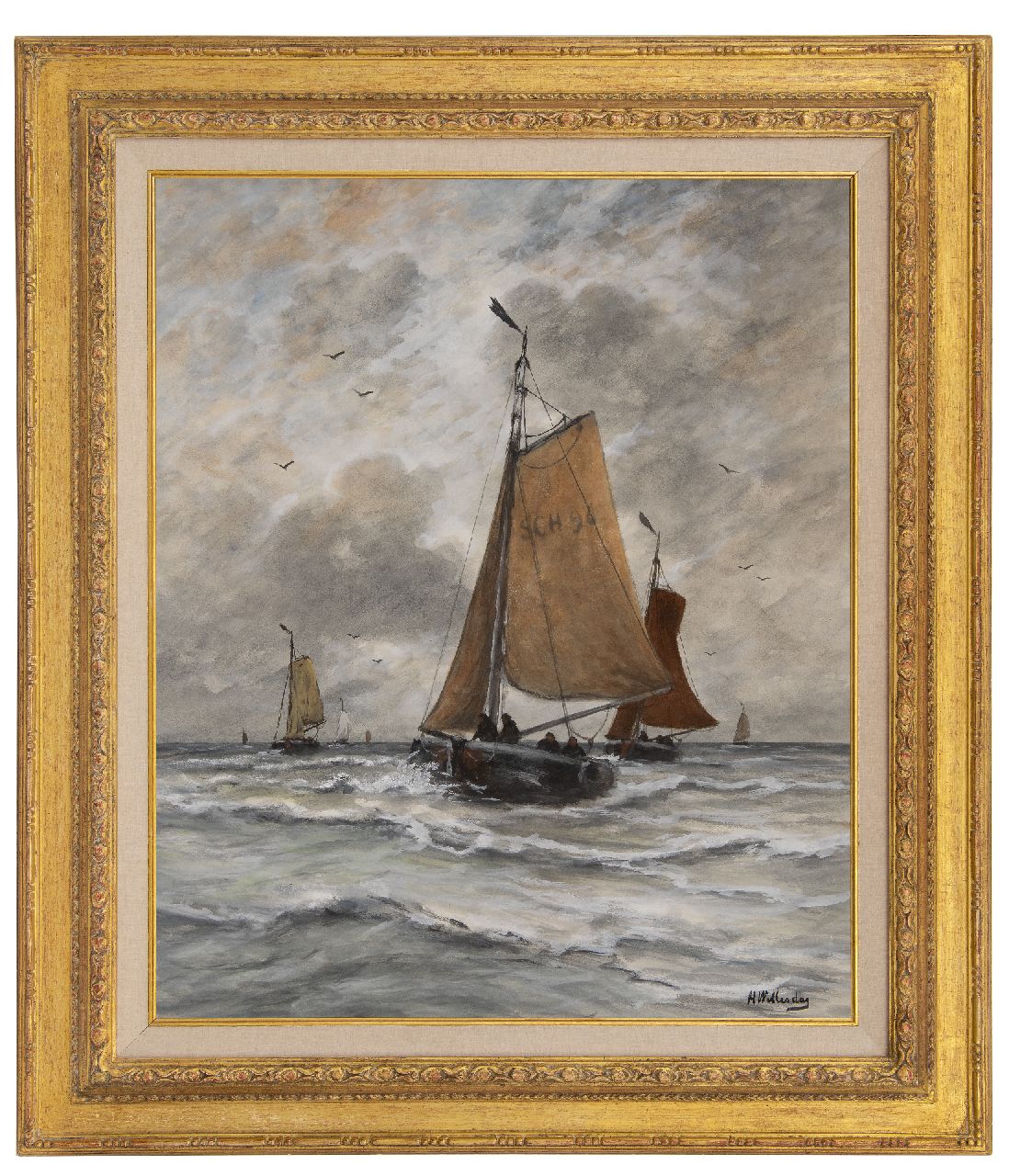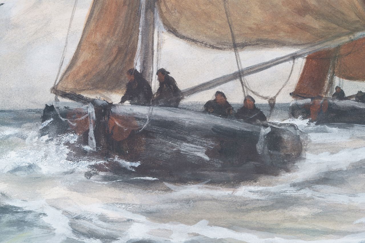 H.W. Mesdag, de zeeschilder van de Haagse School, koos op relatief late leeftijd voor het schildersvak. Na een verblijf in Oosterbeek en Brussel vestigde de schilder zich in 1869 in Den Haag, waar hij direct geboeid werd door het strand, de zee en het leven van de Scheveningse vissers. In een snelle, losse toets en een eindeloze variatie aan bruine, gouden en grijze kleuren bracht hij deze motieven op het doek. Mesdag had een grote productie, als wilde hij alle verloren tijd inhalen. Zijn werk was in Frankrijk zeer geliefd en werd verschillende malen bekroond op de 'Salon' van Parijs.