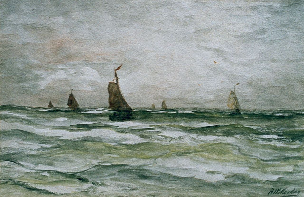 Hendrik Willem Mesdag kunstwerk • aquarel • tekening • voorheen te koop Bomschuiten op volle zee