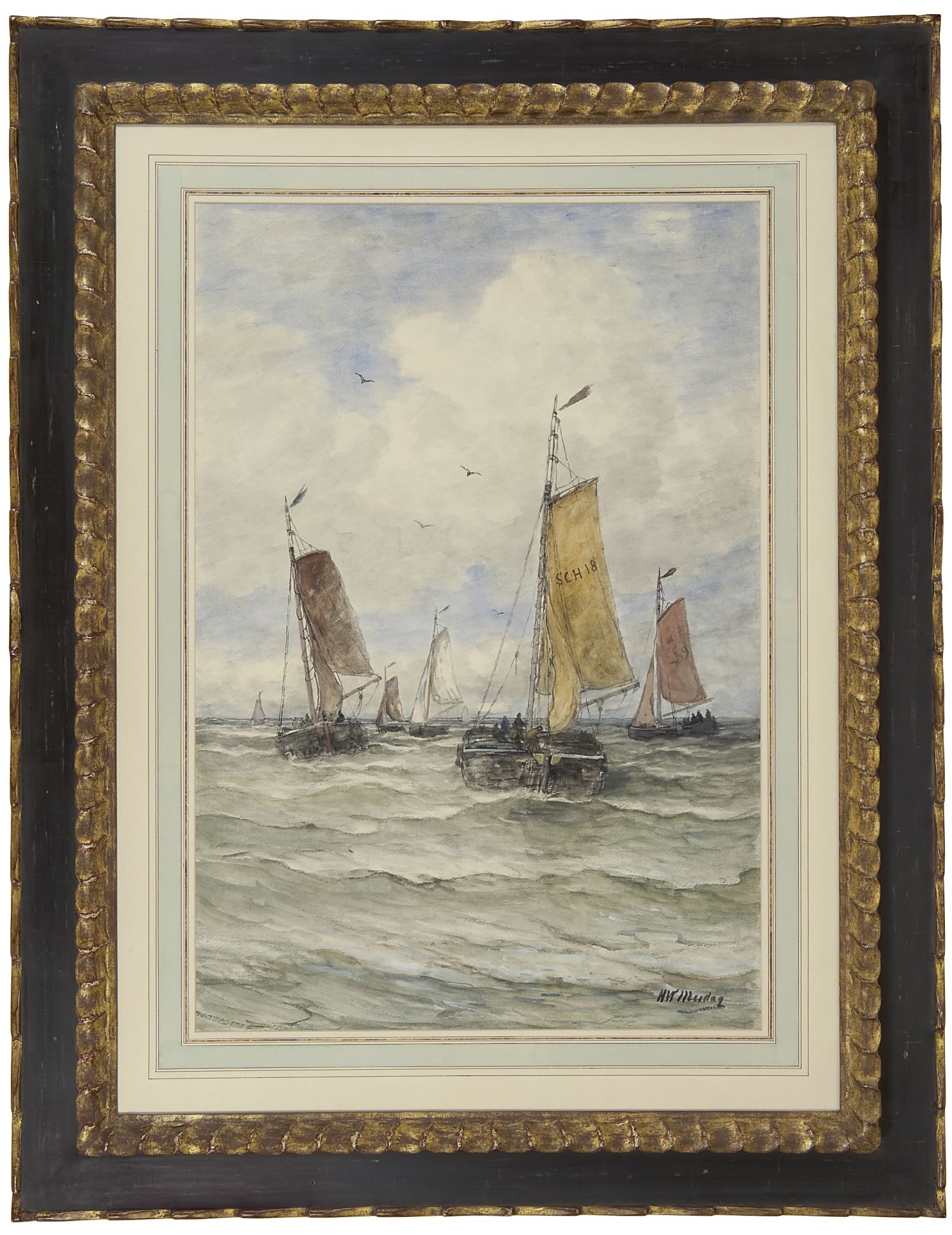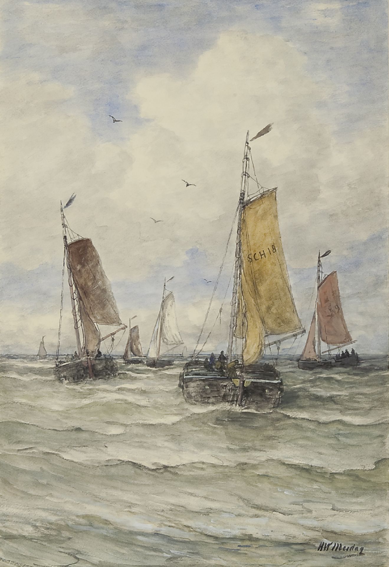Hendrik Willem Mesdag kunstwerk • aquarel • tekening • voorheen te koop Het uitvaren van de vissersvloot, Scheveningen