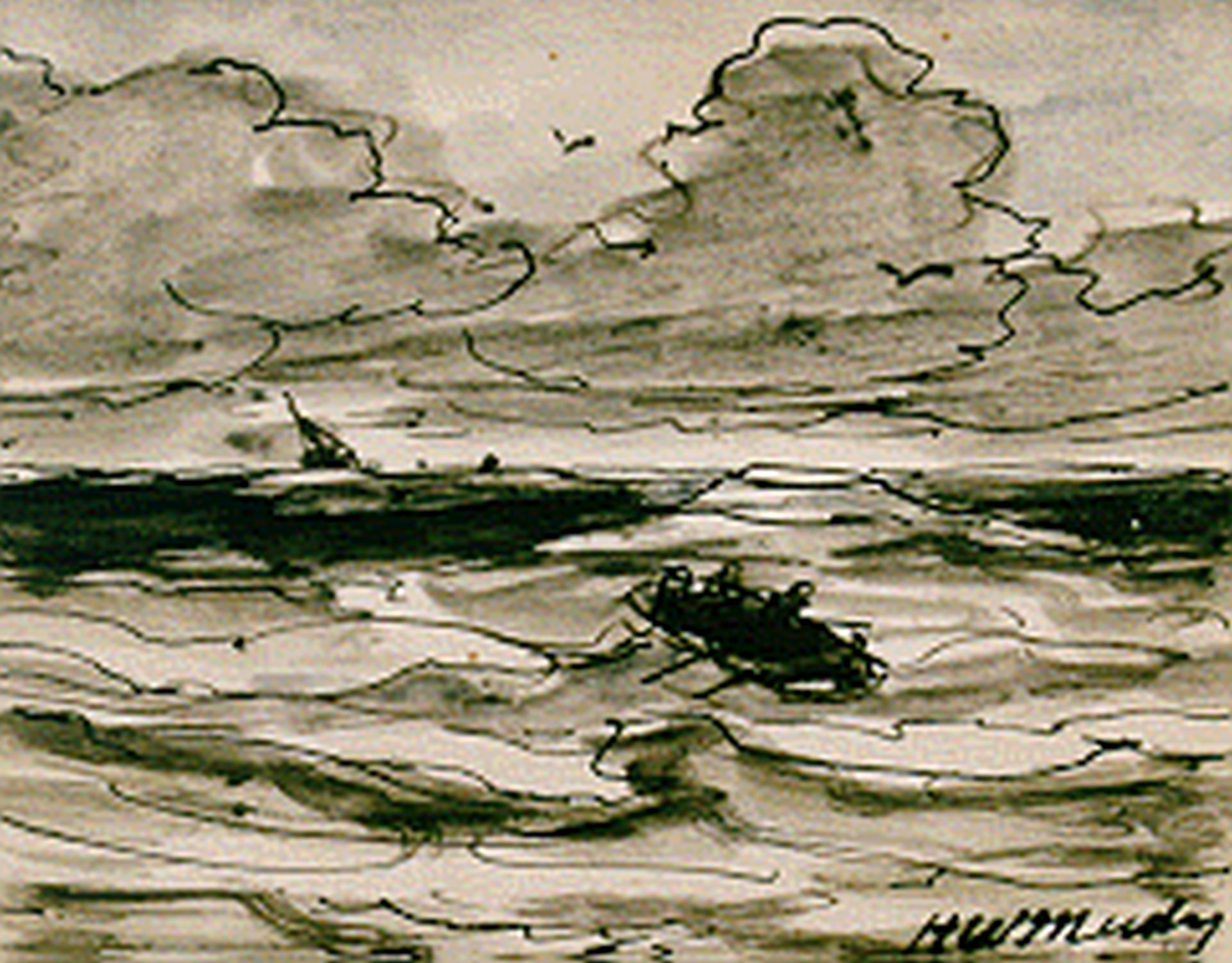 Hendrik Willem Mesdag kunstwerk • aquarel • tekening • voorheen te koop Reddingssloep op volle zee