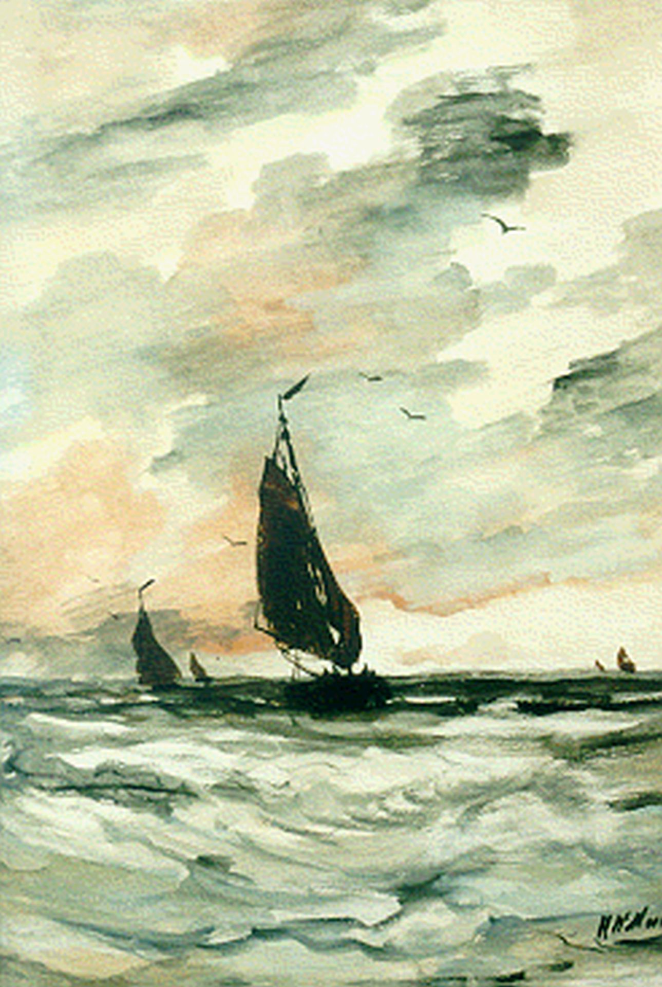 Hendrik Willem Mesdag | Binnenkomende bom, aquarel op papier, 53,0 x 73,5 cm, gesigneerd r.o.