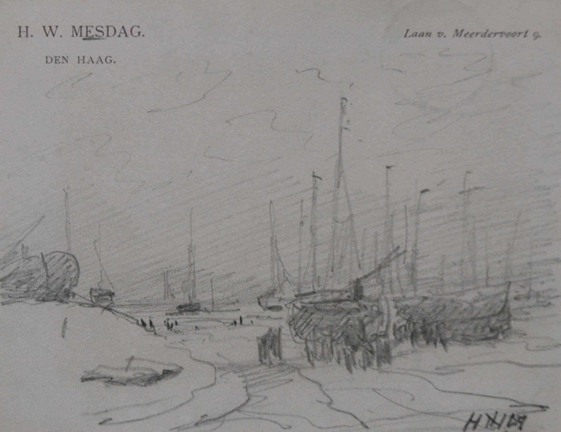 Hendrik Willem Mesdag kunstwerk • aquarel • tekening • voorheen te koop Vissers en schepen op het strand