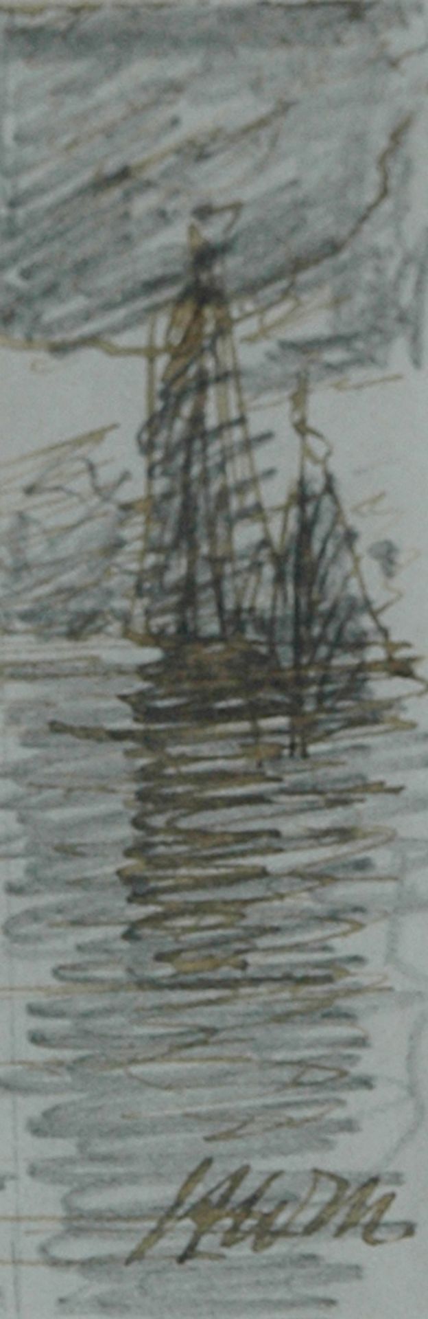 potlood, pen in zwarte inkt op papier 7,7 x 2,5 cm, gesigneerd rechtsonder met initialen