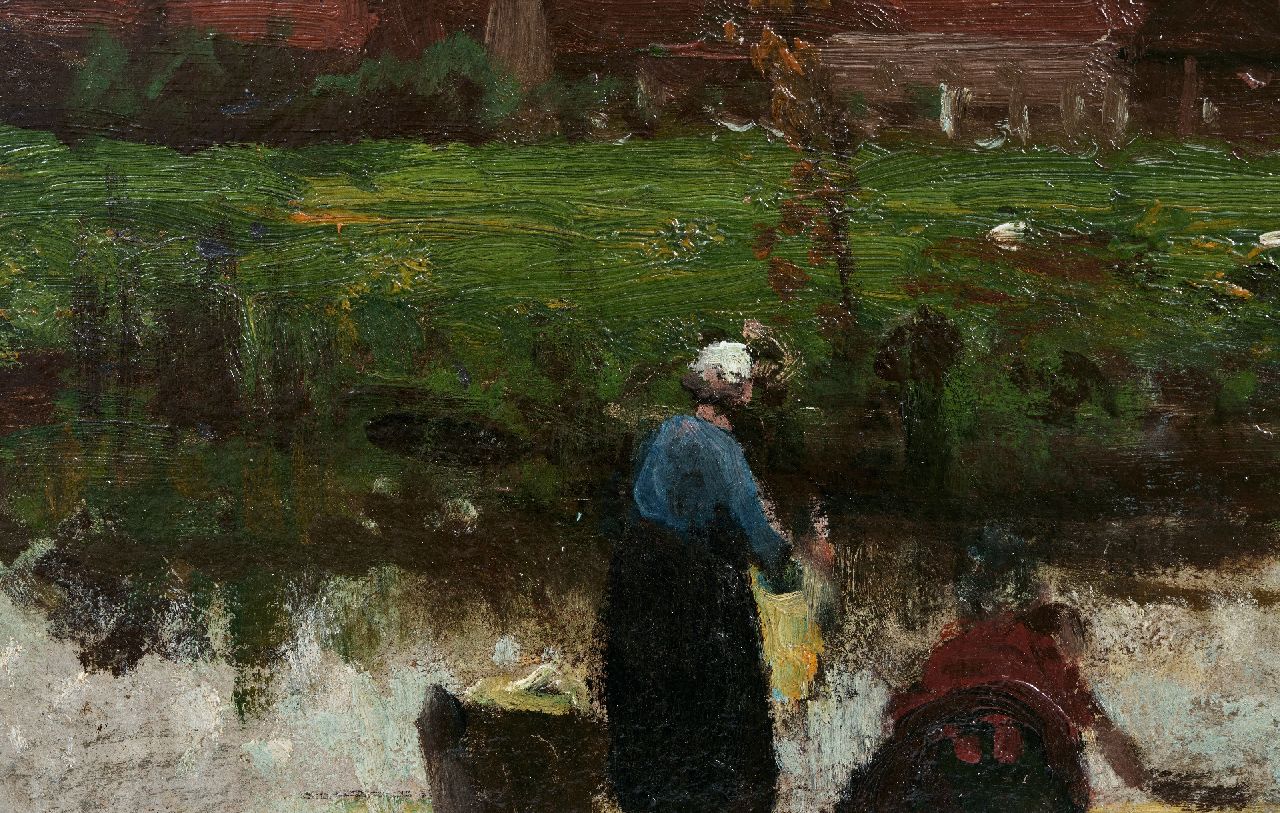 H.W. Mesdag, de zeeschilder van de Haagse School, koos op relatief late leeftijd voor het schildersvak. Na een verblijf in Oosterbeek en Brussel vestigde de schilder zich in 1869 in Den Haag, waar hij direct geboeid werd door het strand, de zee en het leven van de Scheveningse vissers. In een snelle, losse toets en een eindeloze variatie aan bruine, gouden en grijze kleuren bracht hij deze motieven op het doek. Mesdag had een grote productie, als wilde hij alle verloren tijd inhalen. Zijn werk was in Frankrijk zeer geliefd en werd verschillende malen bekroond op de 'Salon' van Parijs.