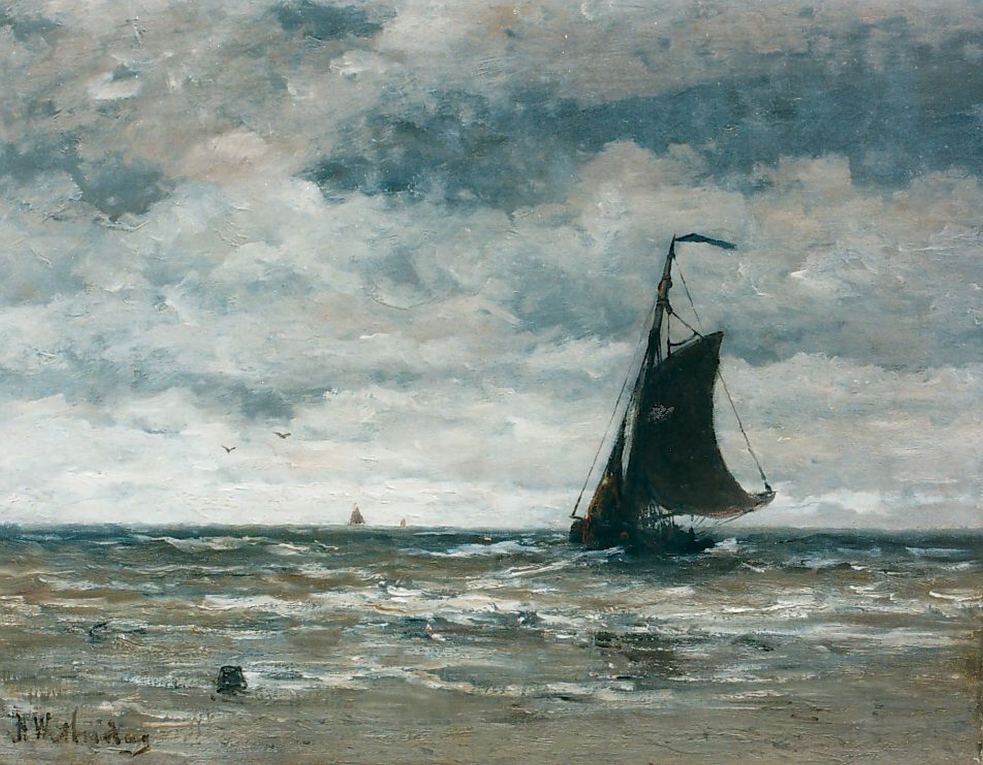 Hendrik Willem Mesdag kunstwerk • schilderij • voorheen te koop Bomschuit voor de kust