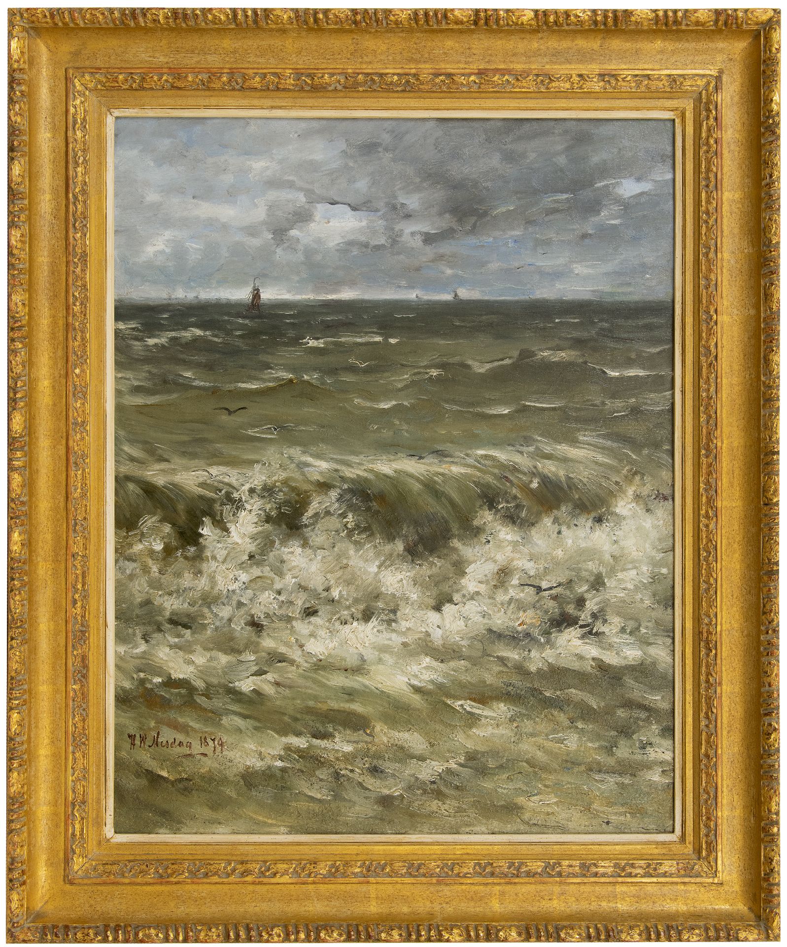Hendrik Willem Mesdag kunstwerk • schilderij • voorheen te koop Branding met schepen in de verte