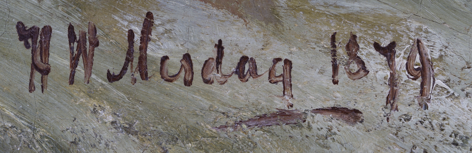 olieverf op doek op paneel 88,6 x 69,5 cm, gesigneerd linksonder en gedateerd 1879