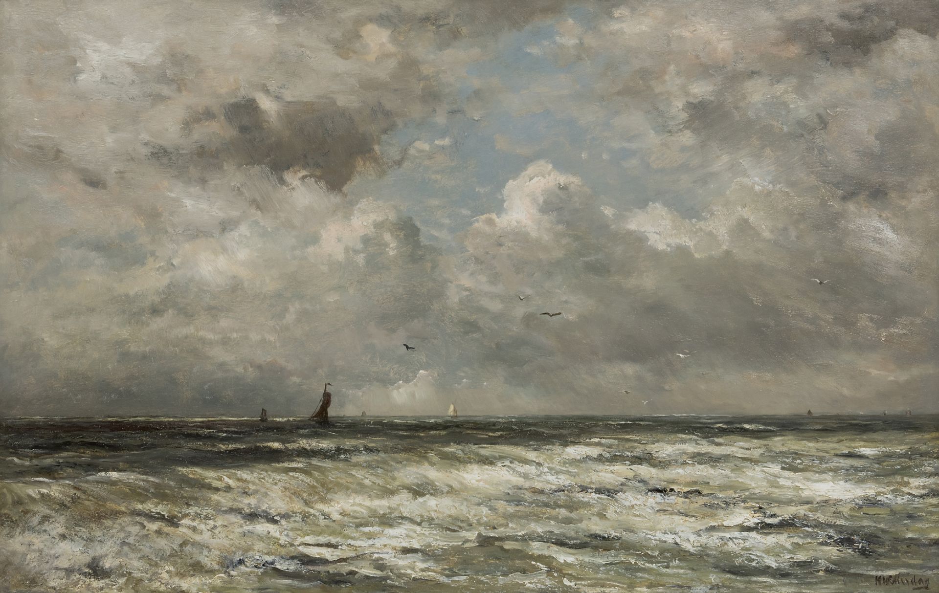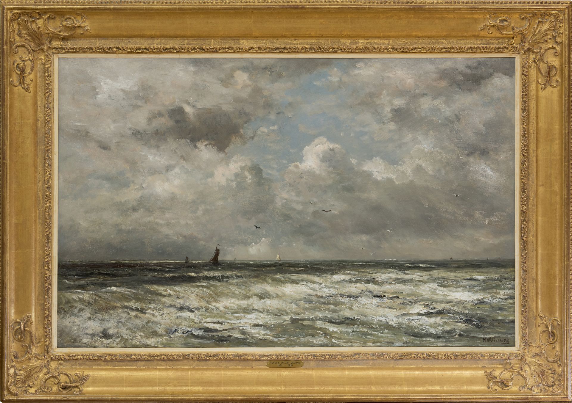 H.W. Mesdag, de zeeschilder van de Haagse School, koos op relatief late leeftijd voor het schildersvak. Na een verblijf in Oosterbeek en Brussel vestigde de schilder zich in 1869 in Den Haag, waar hij direct geboeid werd door het strand, de zee en het leven van de Scheveningse vissers. In een snelle, losse toets en een eindeloze variatie aan bruine, gouden en grijze kleuren bracht hij deze motieven op het doek. Mesdag had een grote productie, als wilde hij alle verloren tijd inhalen. Zijn werk was in Frankrijk zeer geliefd en werd verschillende malen bekroond op de 'Salon' van Parijs.