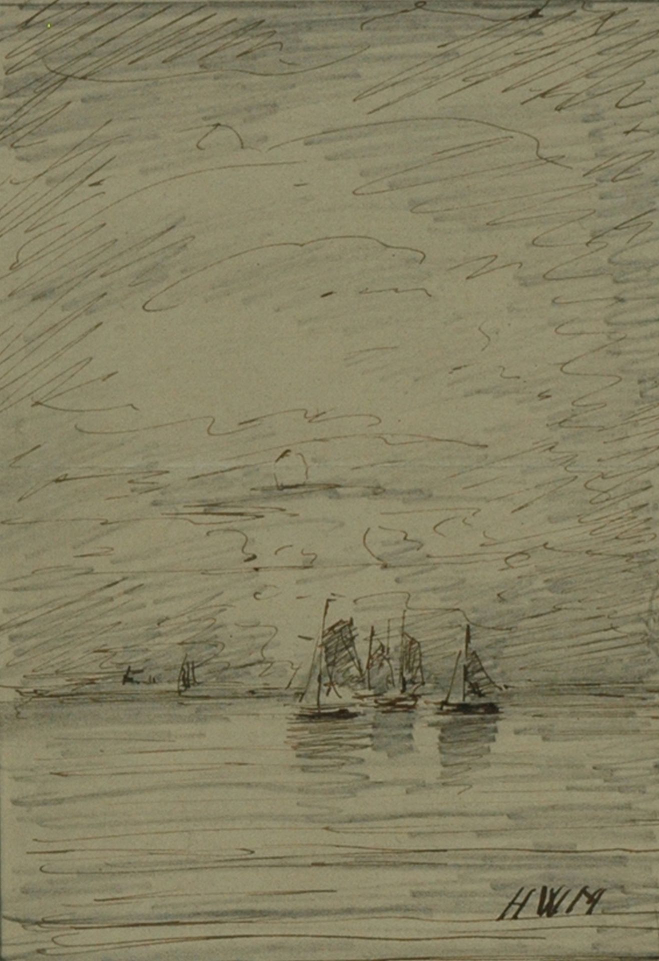 Hendrik Willem Mesdag kunstwerk • aquarel • tekening • voorheen te koop Schepen op zee