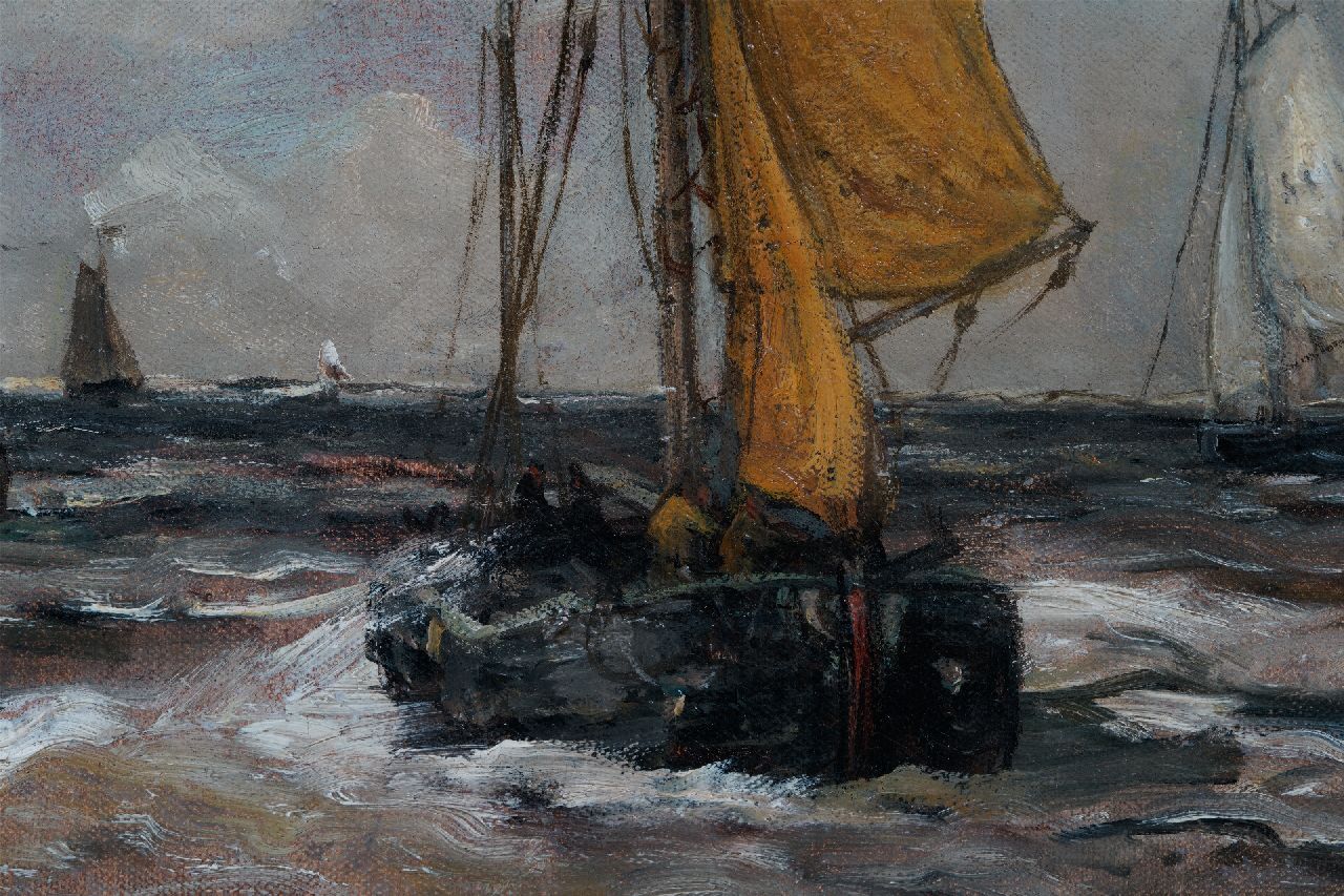 H.W. Mesdag, de zeeschilder van de Haagse School, koos op relatief late leeftijd voor het schildersvak. Na een verblijf in Oosterbeek en Brussel vestigde de schilder zich in 1869 in Den Haag, waar hij direct geboeid werd door het strand, de zee en het leven van de Scheveningse vissers. In een snelle, losse toets en een eindeloze variatie aan bruine, gouden en grijze kleuren bracht hij deze motieven op het doek. Mesdag had een grote productie, als wilde hij alle verloren tijd inhalen. Zijn werk was in Frankrijk zeer geliefd en werd verschillende malen bekroond op de 'Salon' van Parijs.