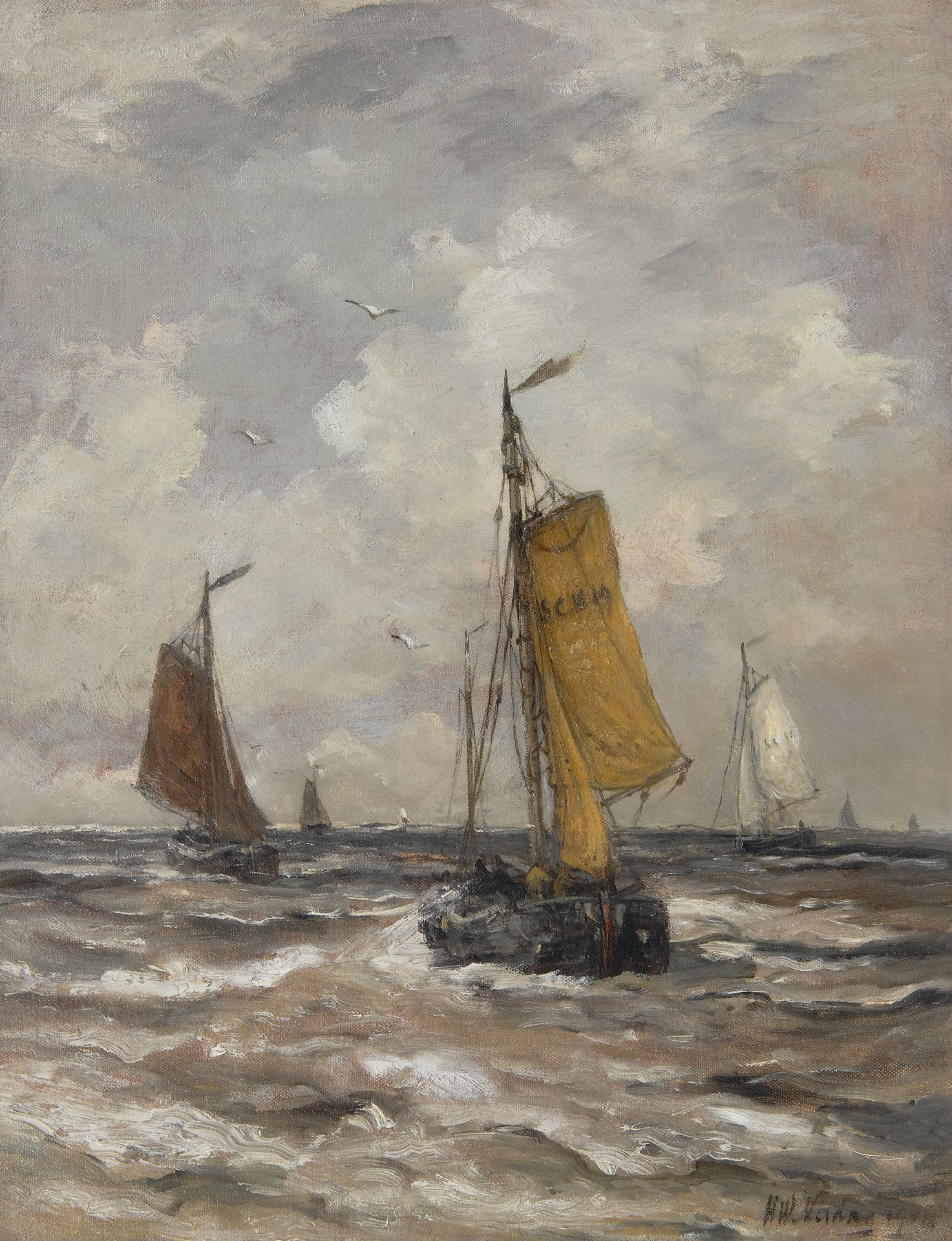 Hendrik Willem Mesdag kunstwerk • schilderij • voorheen te koop Terugkerende bomschuiten