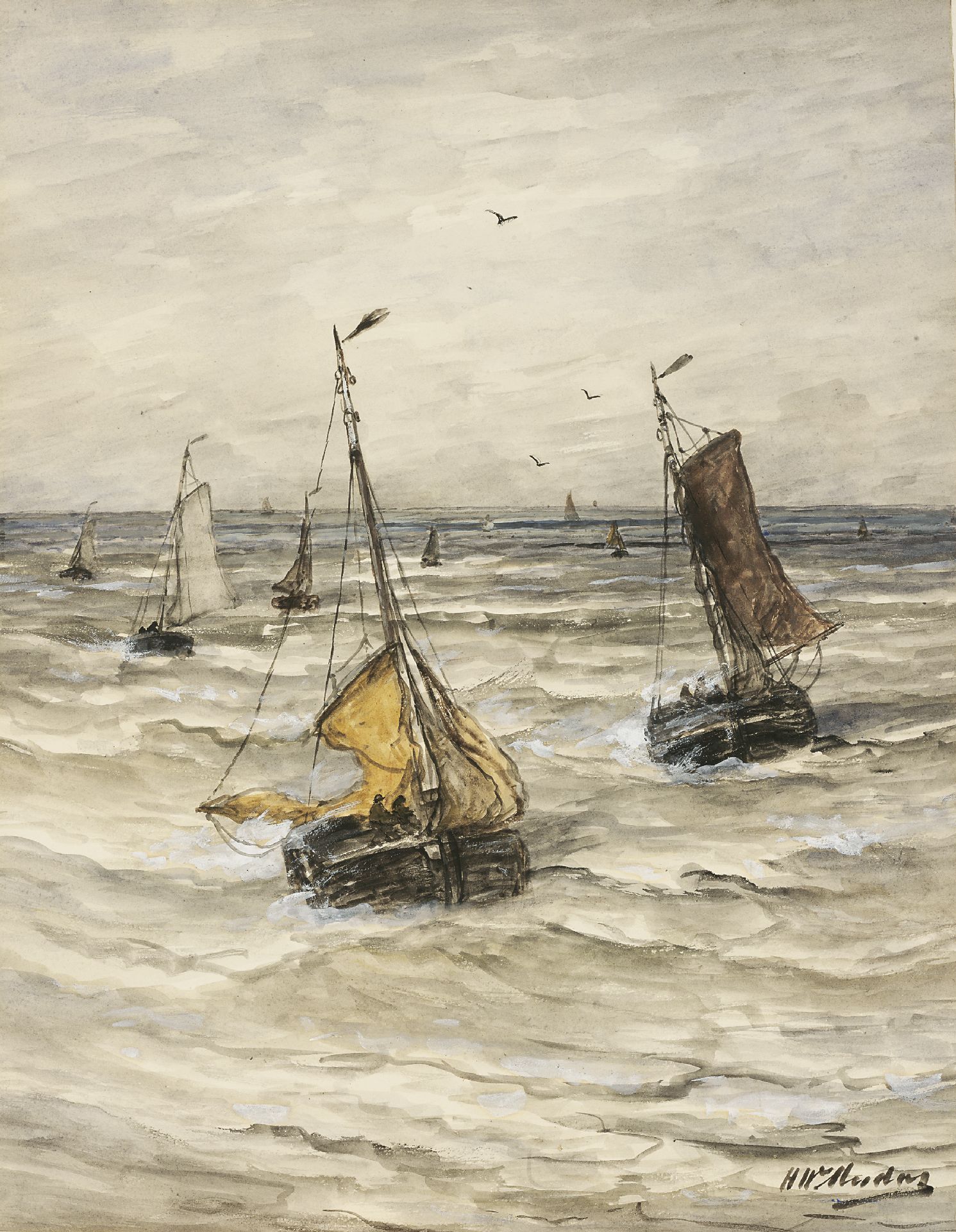 Hendrik Willem Mesdag kunstwerk • aquarel • tekening • voorheen te koop Thuiskomst van de vloot