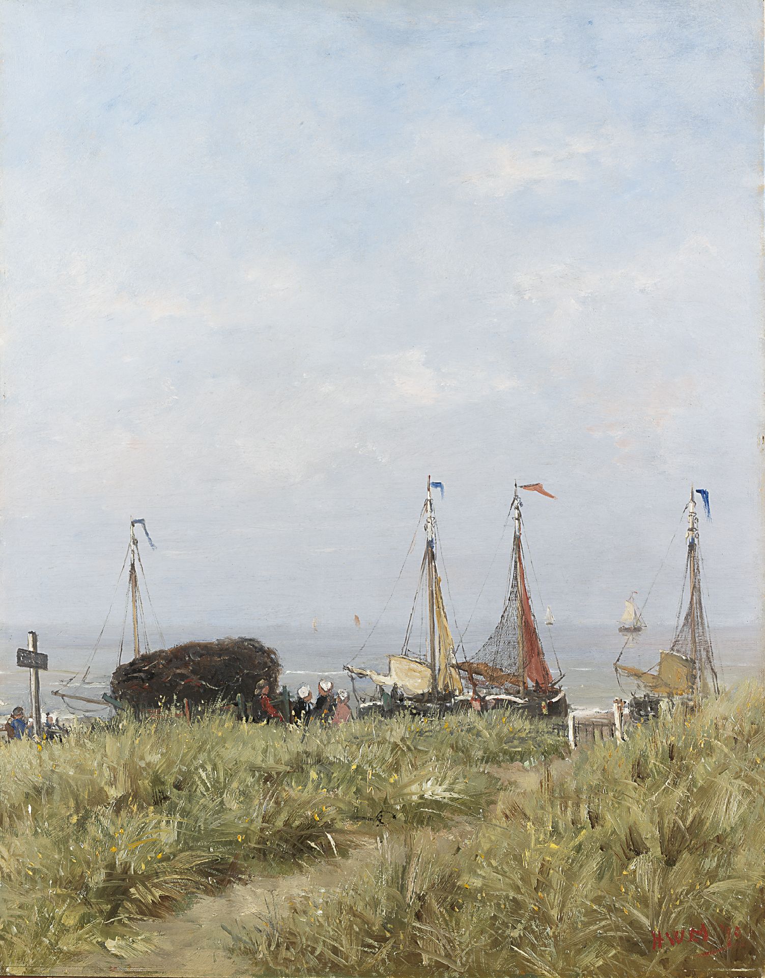 H.W. Mesdag, de zeeschilder van de Haagse School, koos op relatief late leeftijd voor het schildersvak. Na een verblijf in Oosterbeek en Brussel vestigde de schilder zich in 1869 in Den Haag, waar hij direct geboeid werd door het strand, de zee en het leven van de Scheveningse vissers. In een snelle, losse toets en een eindeloze variatie aan bruine, gouden en grijze kleuren bracht hij deze motieven op het doek. Mesdag had een grote productie, als wilde hij alle verloren tijd inhalen. Zijn werk was in Frankrijk zeer geliefd en werd verschillende malen bekroond op de 'Salon' van Parijs.