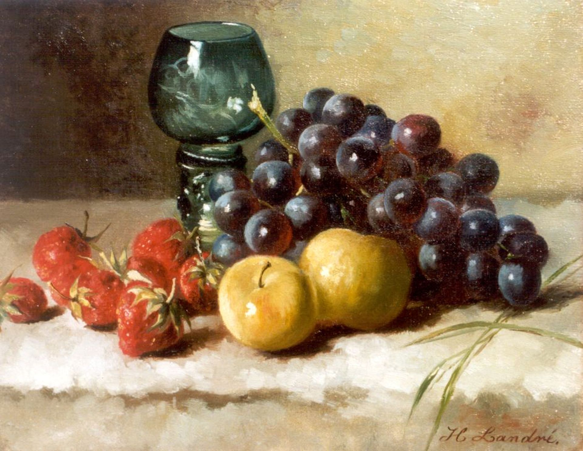 Hendrika Landré-van der Kellen kunstwerk • schilderij • voorheen te koop Stilleven met druiven, aardbeien en wijnroemer