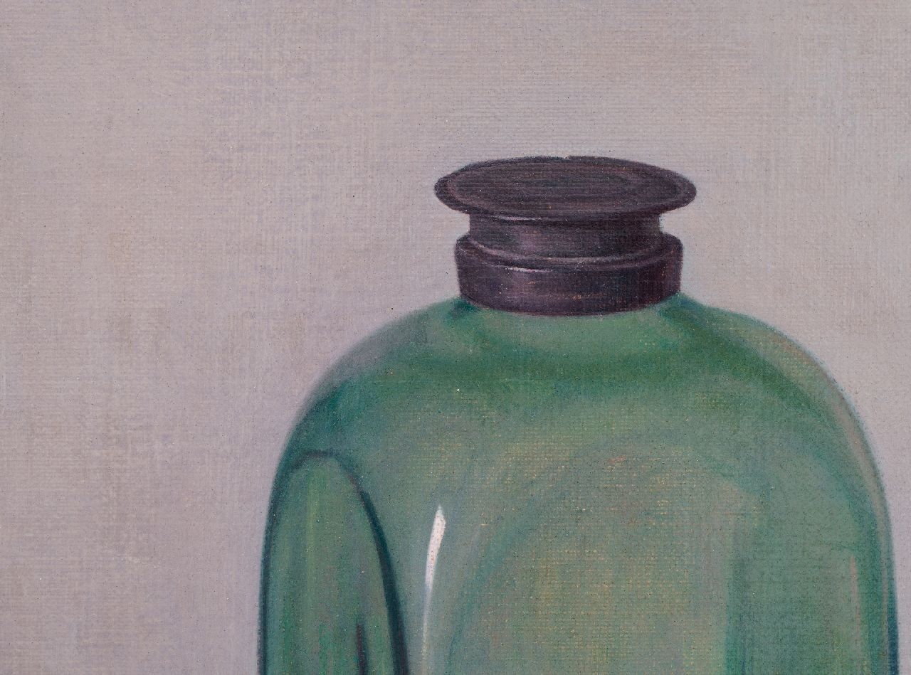 Stilleven met glazen fles