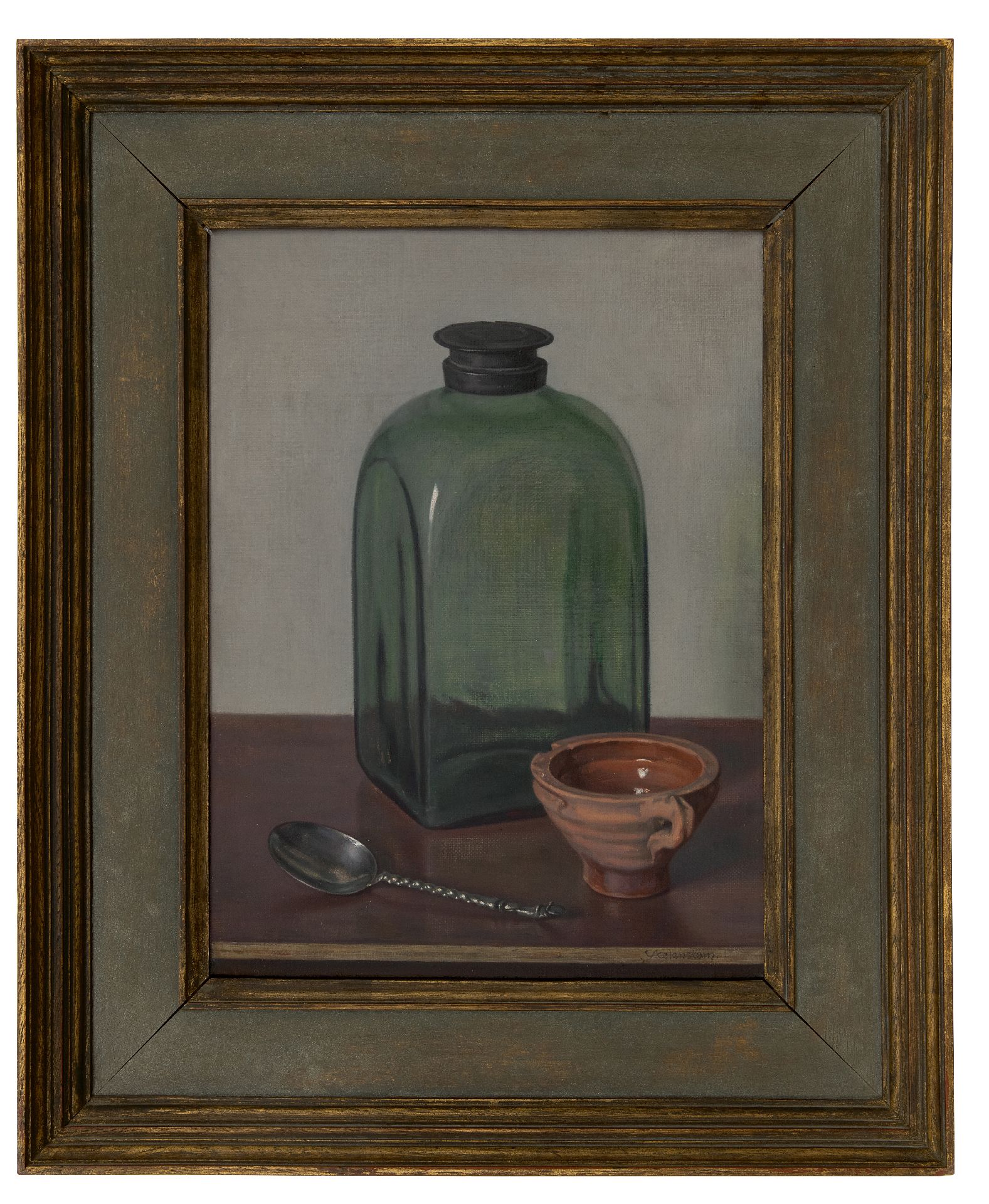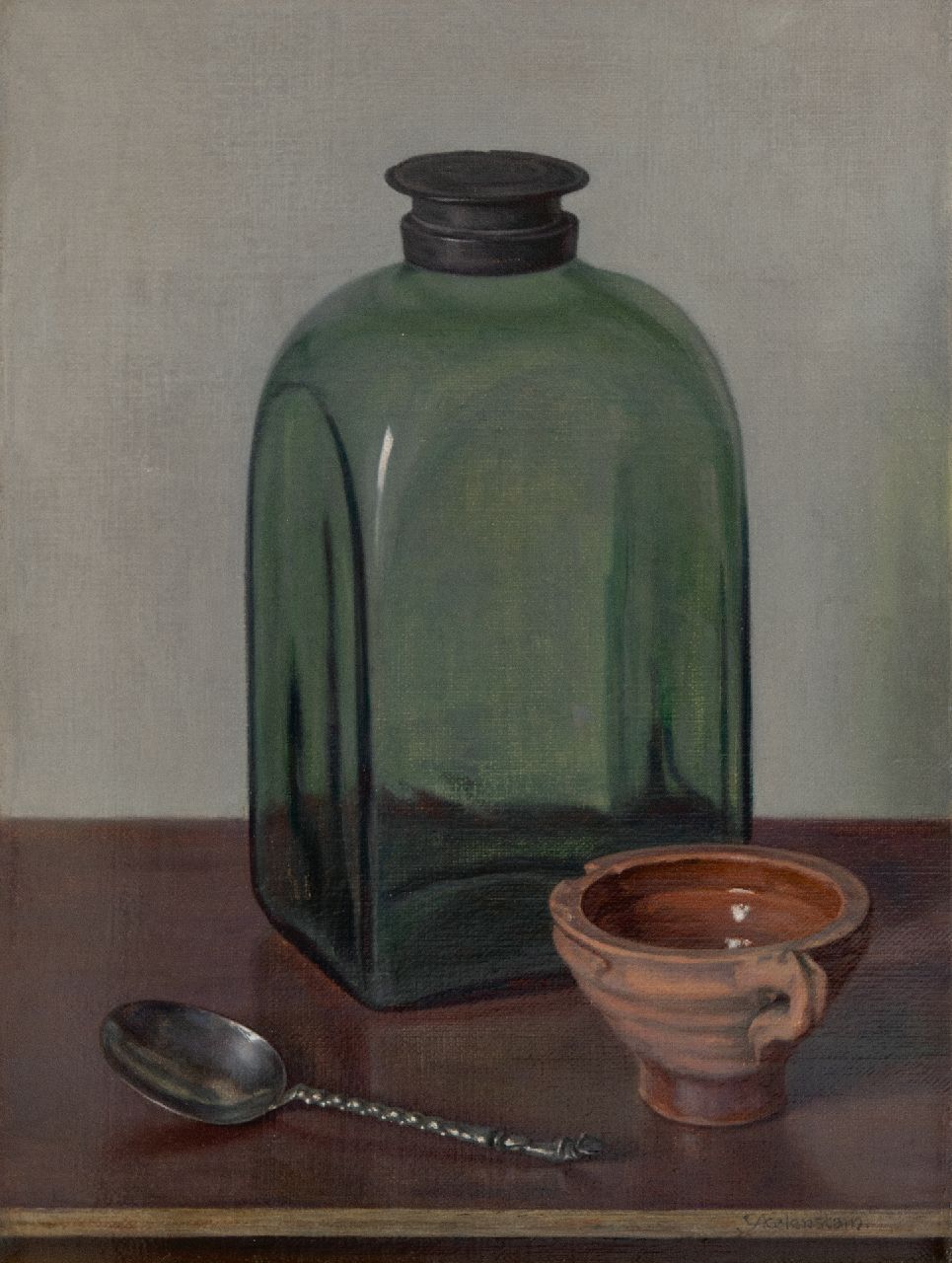Hendrikus IJkelenstam kunstwerk • schilderij • voorheen te koop Stilleven met glazen fles