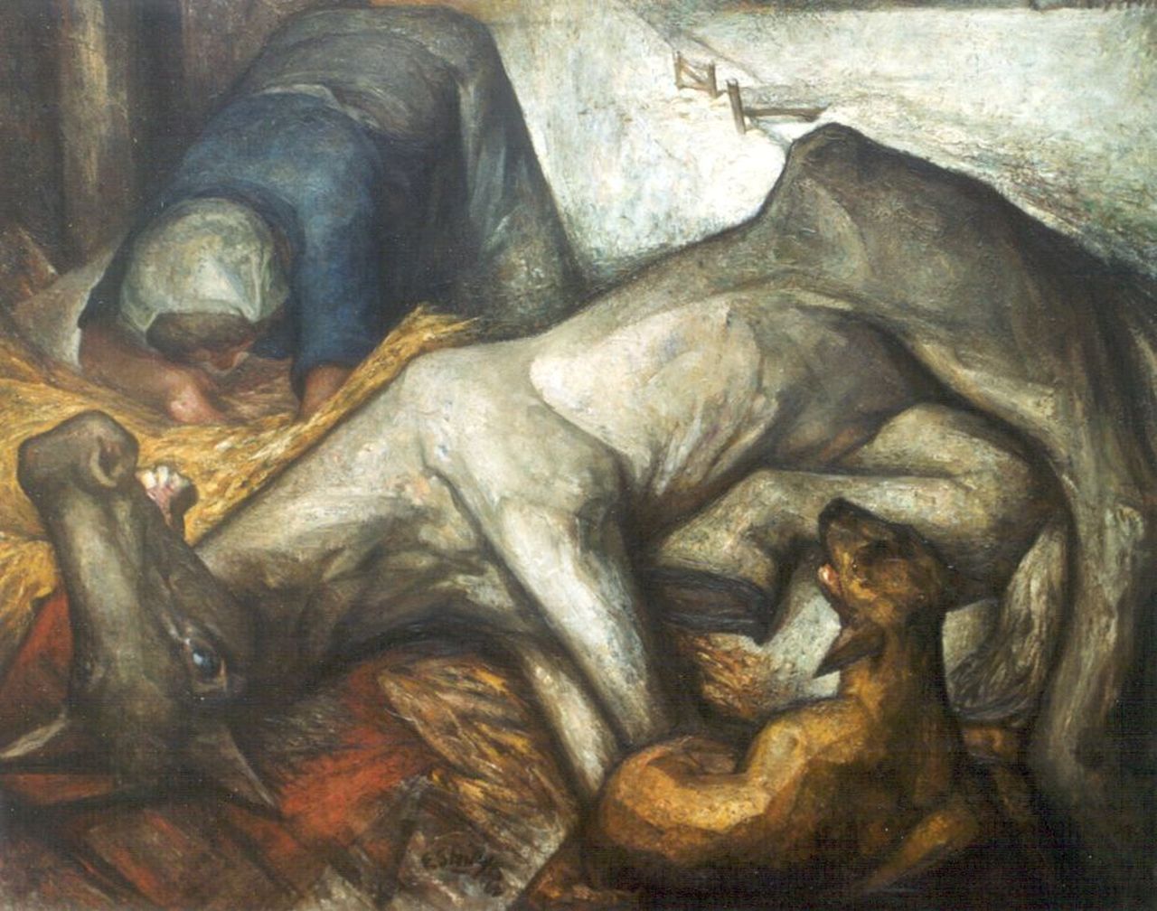 Hendrikus Jacobus Eshuijs kunstwerk • schilderij • voorheen te koop Stervend paard