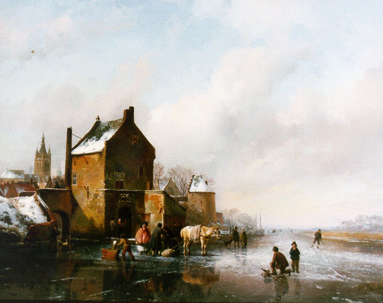 Hendrikus van de Sande Bakhuyzen kunstwerk • schilderij • voorheen te koop Bevroren vaart aan de stadsrand van Delft