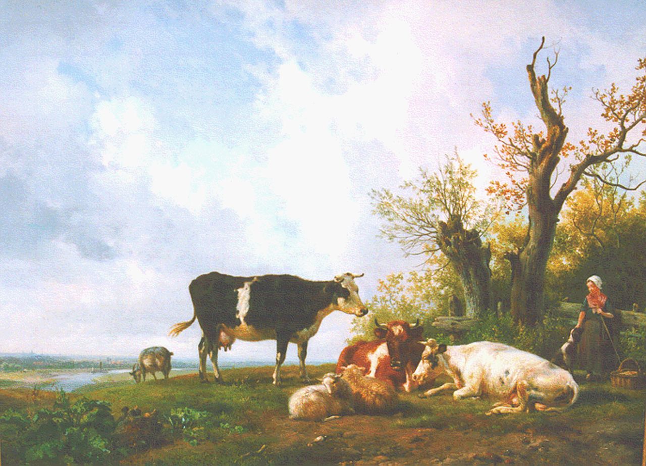 Hendrikus van de Sande Bakhuyzen kunstwerk • schilderij • voorheen te koop Herderin met haar vee