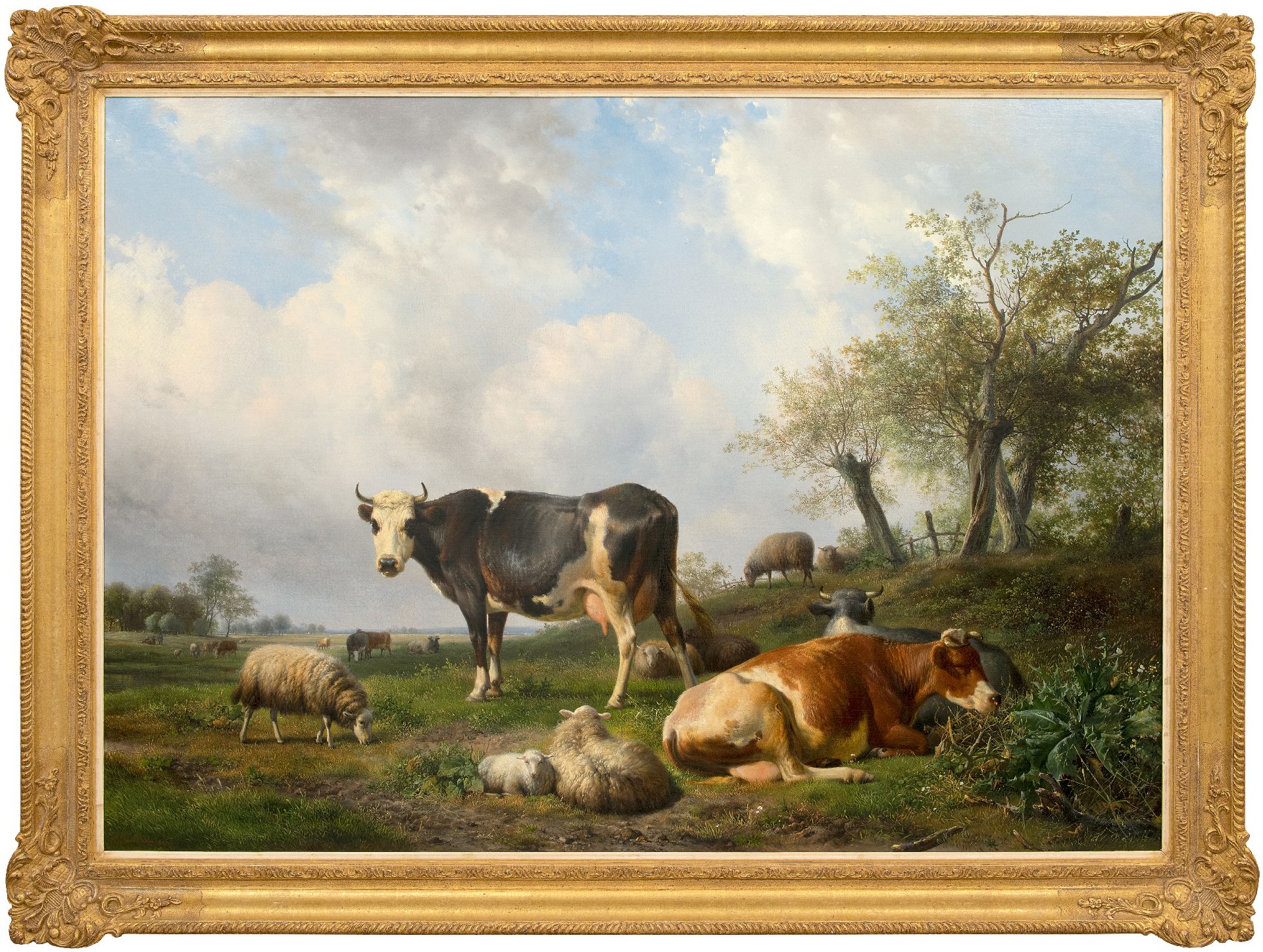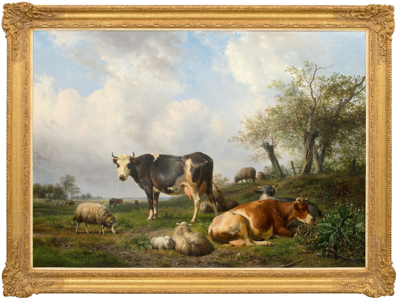 Hendrikus van de Sande Bakhuyzen kunstwerk • schilderij • te koop Landschap met rustende koeien en schapen