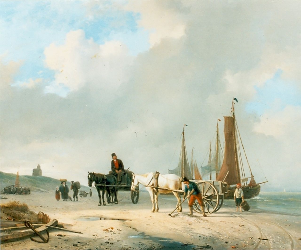 Hendrikus van de Sande Bakhuyzen kunstwerk • schilderij • voorheen te koop Schelpenvissers op het strand bij Oostende