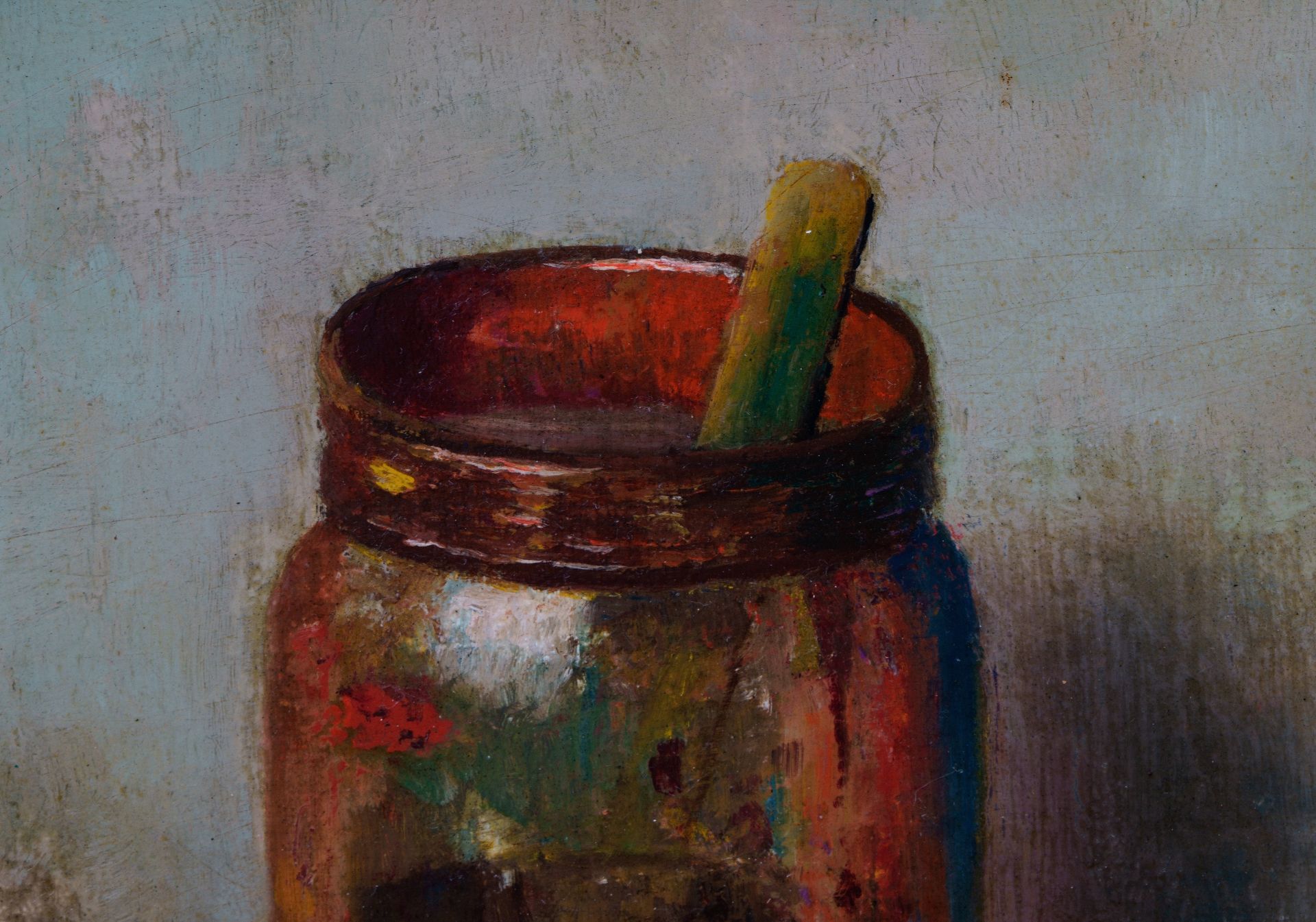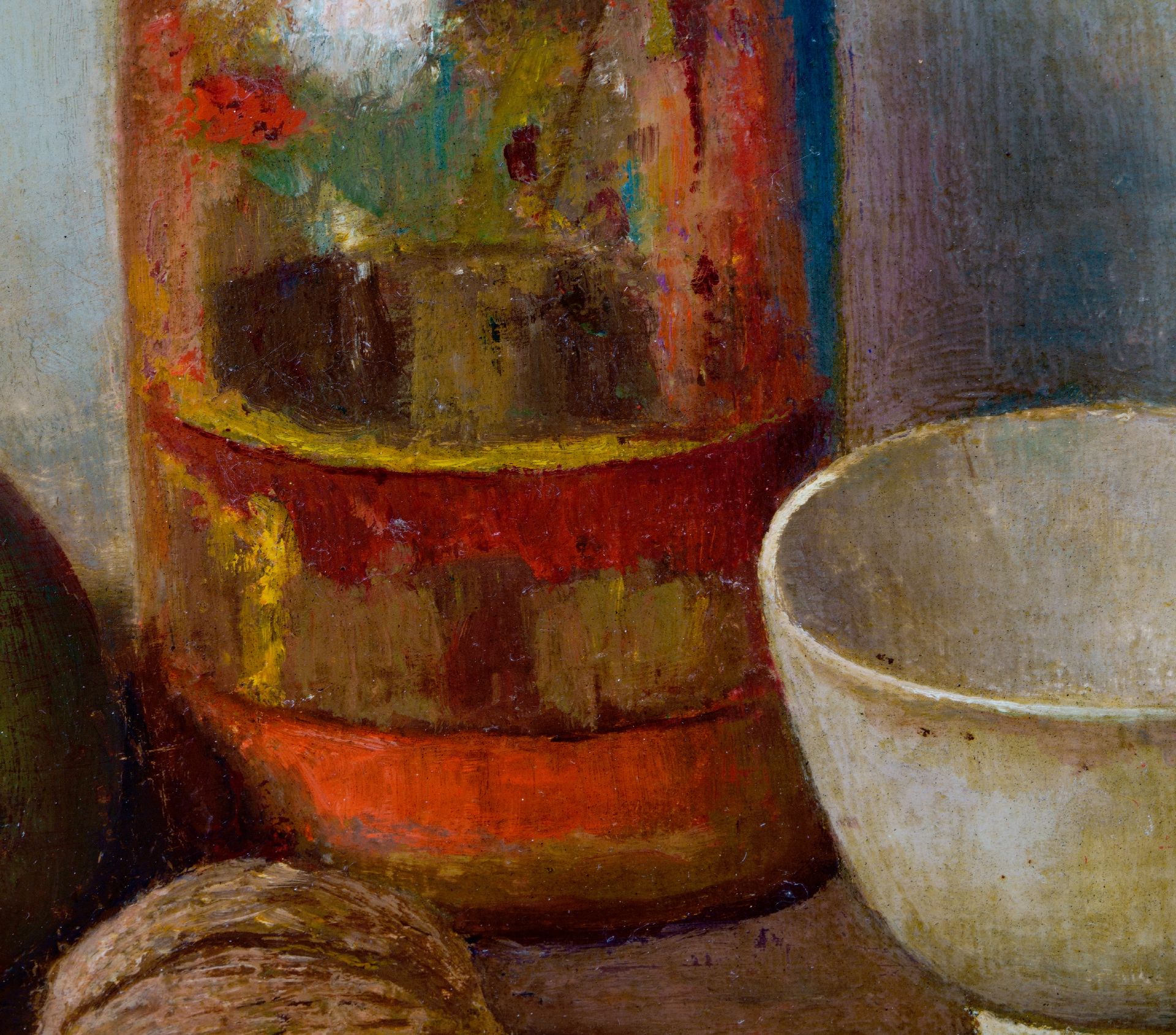 Henk Bos kunstwerk • schilderij • voorheen te koop Stilleven met appel en walnoot