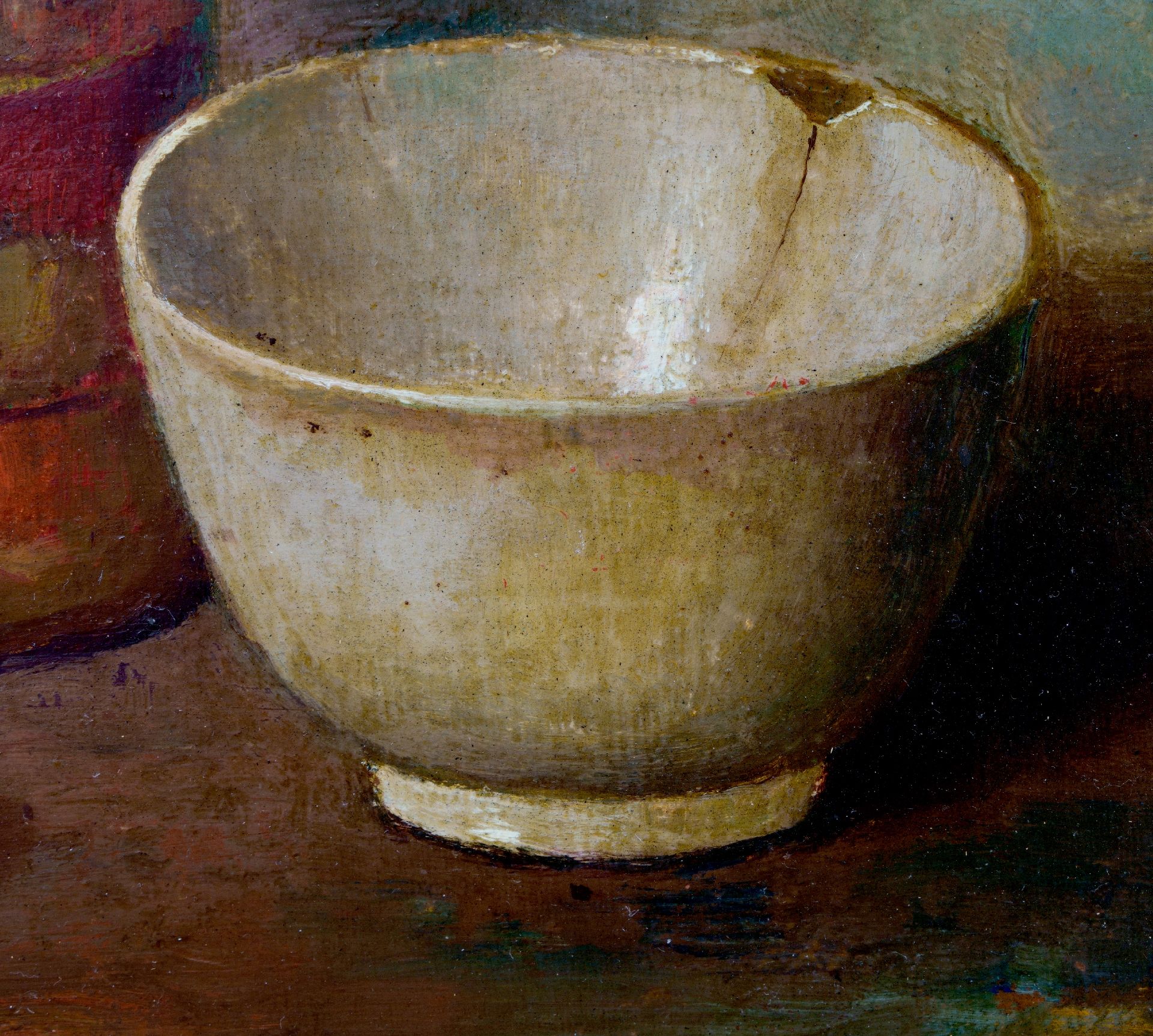De Gooise kunstenaar Henk Bos leerde zichzelf schilderen. Hij verbeeldde in realistisch-impressionistische stijl landschappen, bloemstukken, (zelf)portretten en stillevens. Vooral dit laatste onderwerp boeide hem. Het zijn ingetogen tafereeltjes van eenvoudige, bijeen gezette voorwerpen zoals een kan met een schaal eieren, of een stapel boeken bij een vaasje veldbloemen. In de traditie van de 17e-eeuwse Hollandse schilders is hij een meester in het schilderen van koper, tin en oud aardewerk.