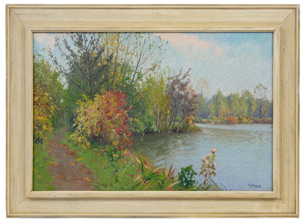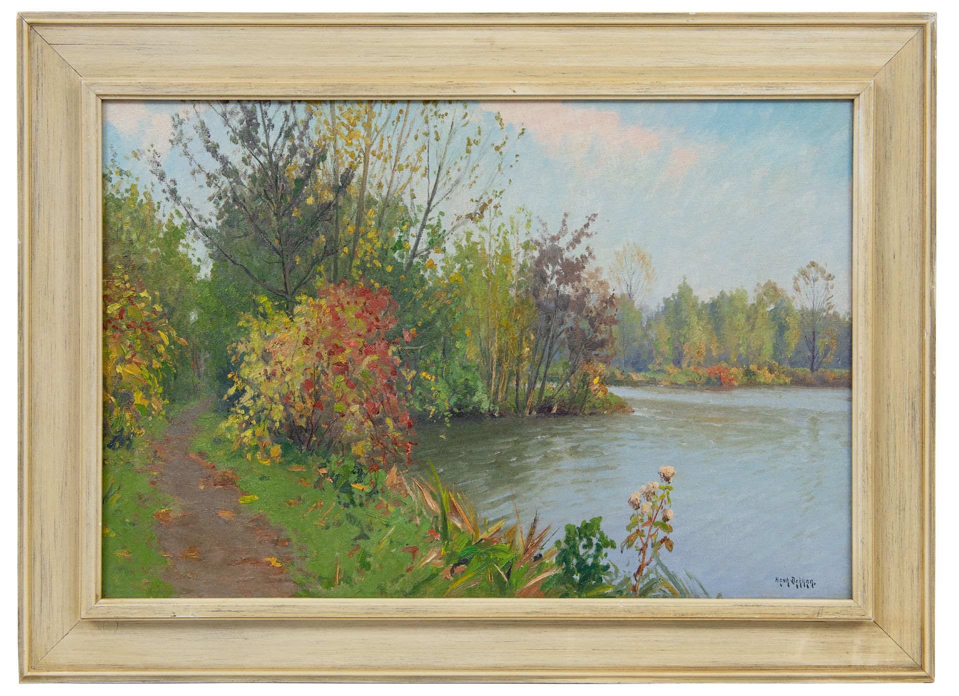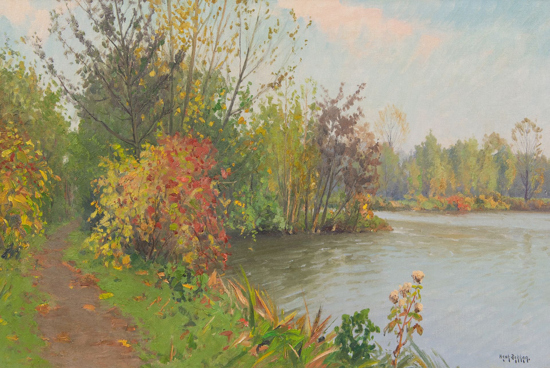 Henk Dekker kunstwerk • schilderij • voorheen te koop Rivieroever in de herfst
