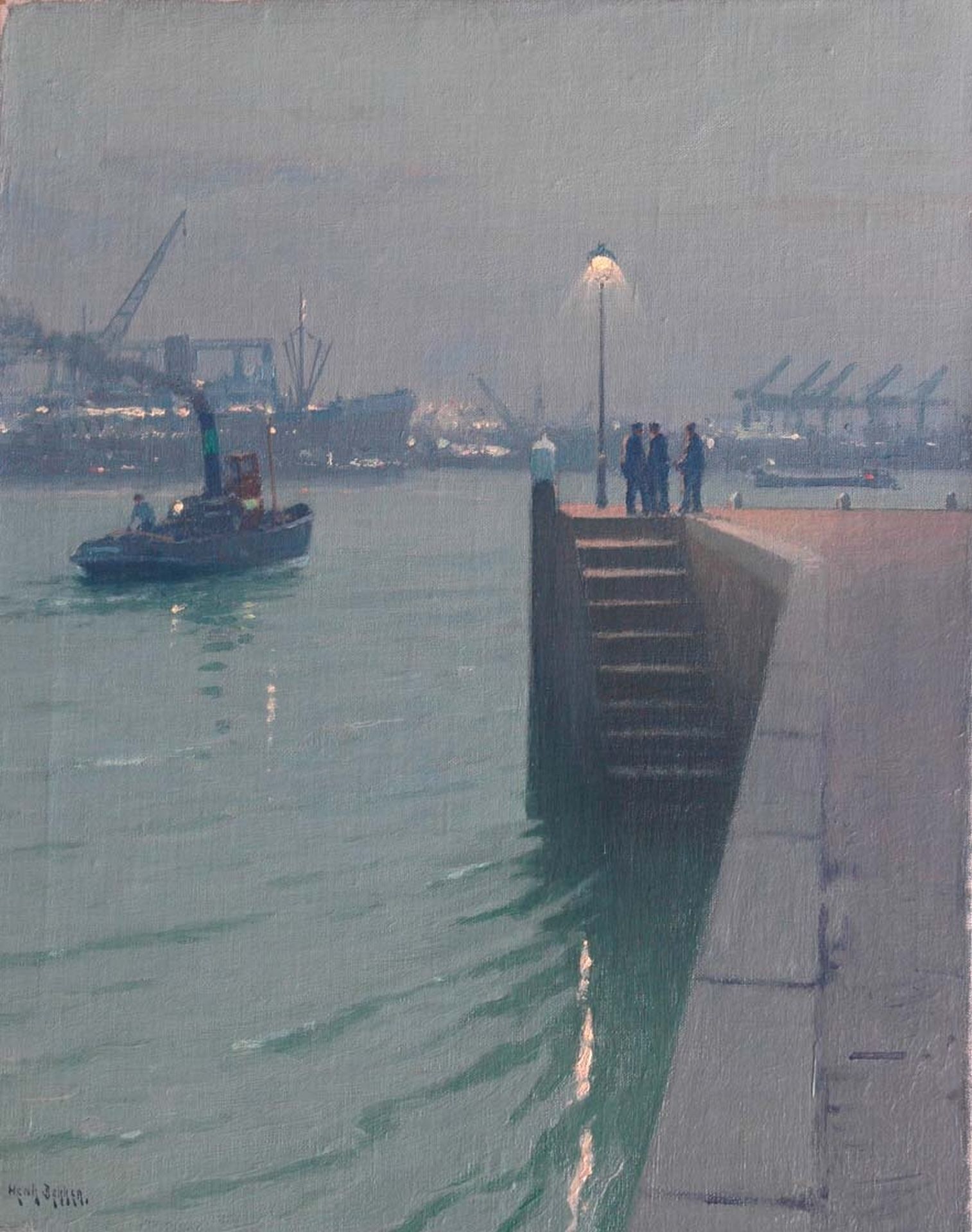 Henk Dekker kunstwerk • schilderij • voorheen te koop Schiemond bij avond
