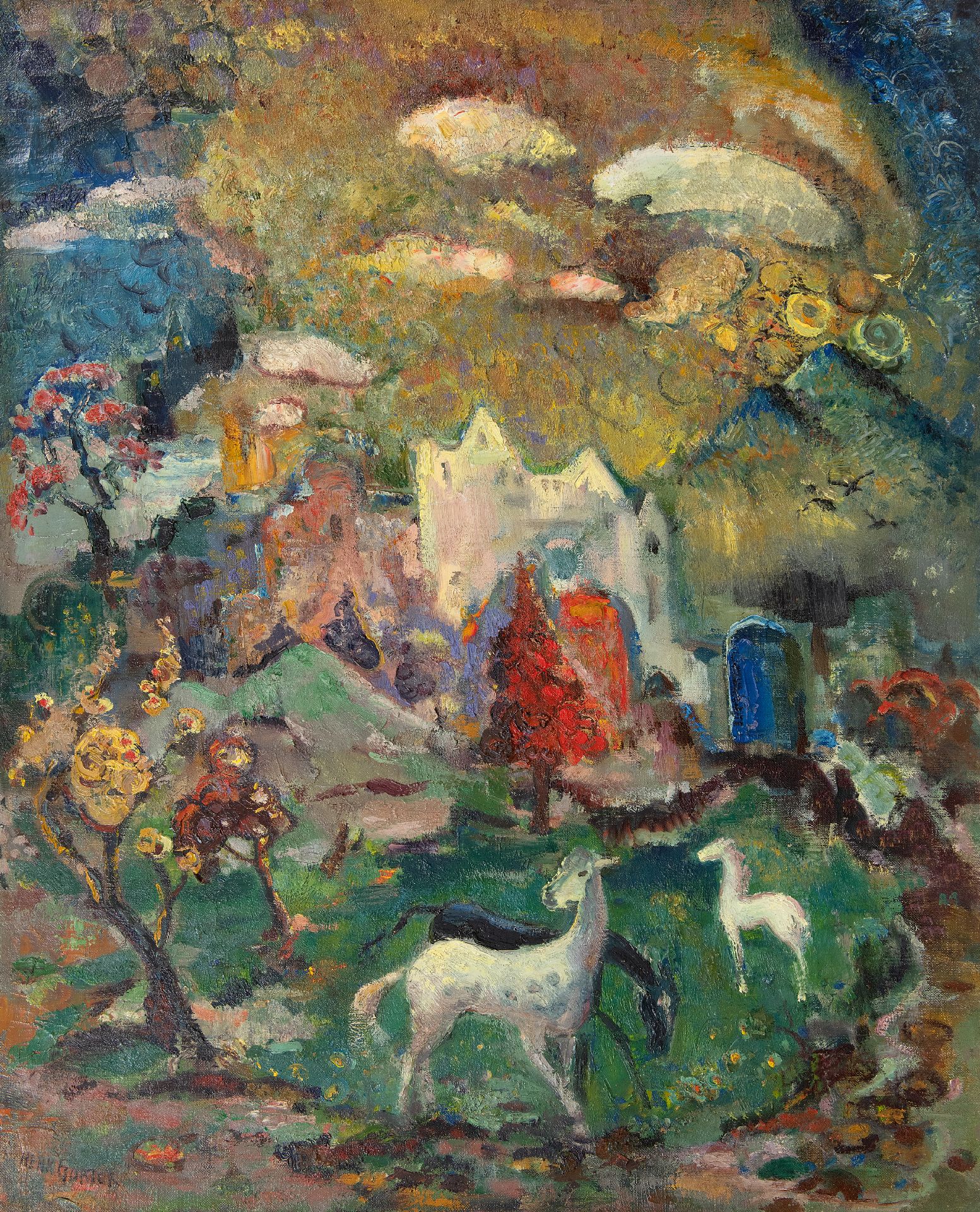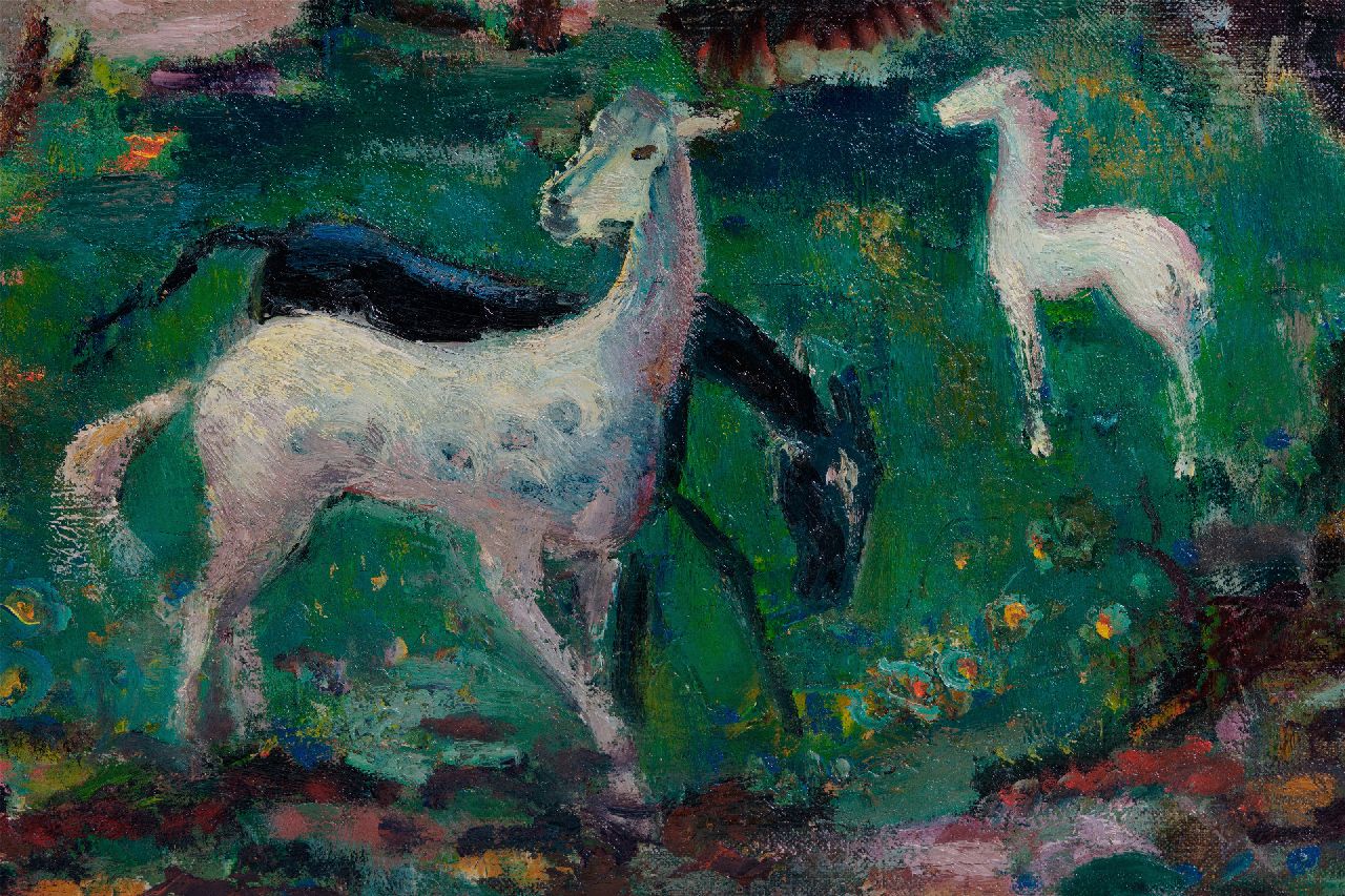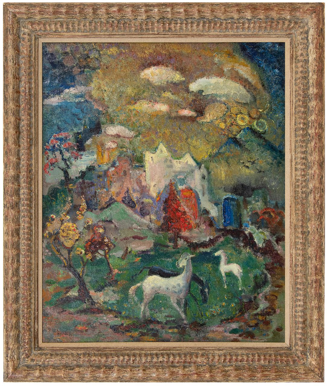 Henk Gorter kunstwerk • schilderij • voorheen te koop Droomlandschap met paarden