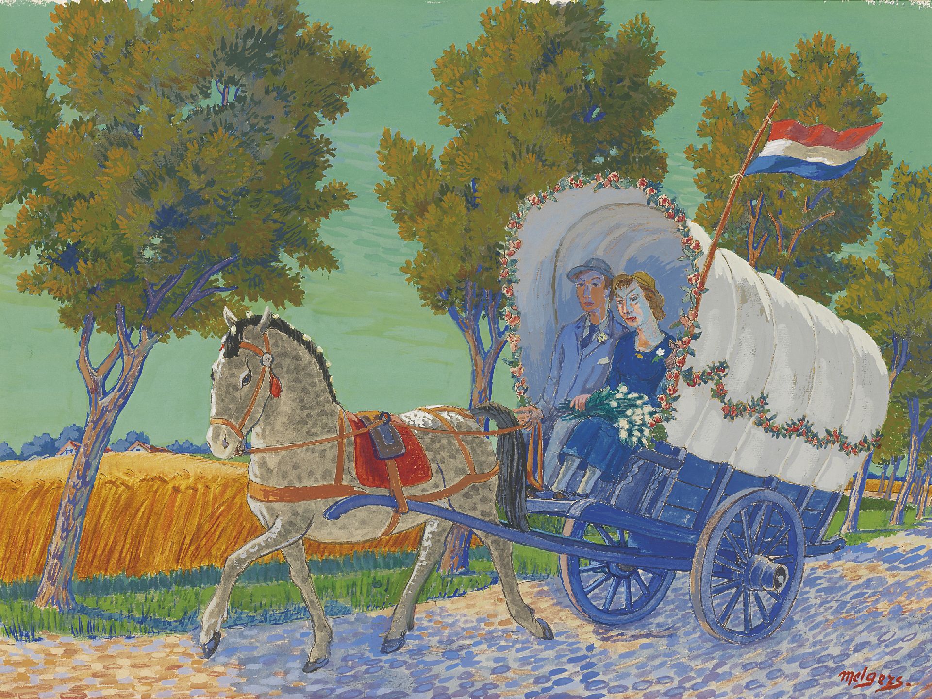 Henk Melgers kunstwerk • aquarel • tekening • te koop Boerenbruidspaar