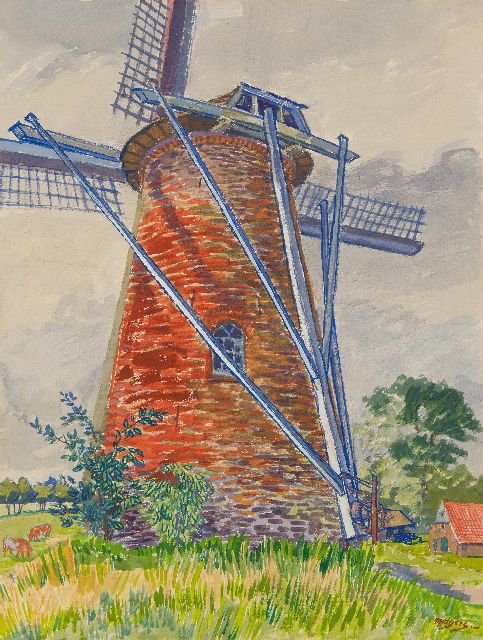 gouache op papier 35,4 x 51,8 cm, gesigneerd linksonder en te dateren jaren '50