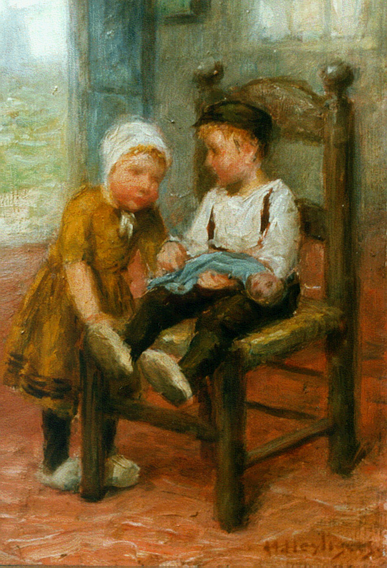 Henri Heijligers kunstwerk • schilderij • voorheen te koop Kinderen met pop
