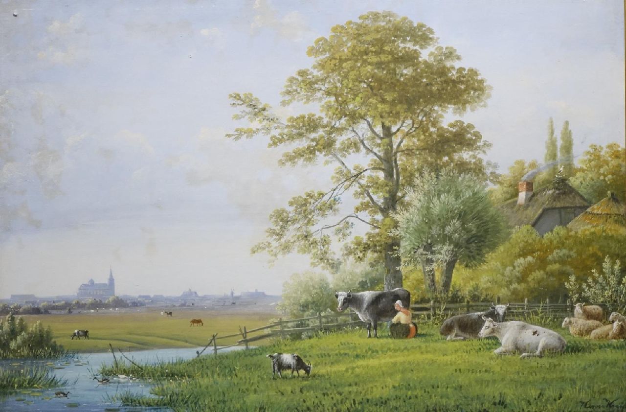 Henri Knip kunstwerk • aquarel • tekening • voorheen te koop Boerenerf, in de verte Den Bosch