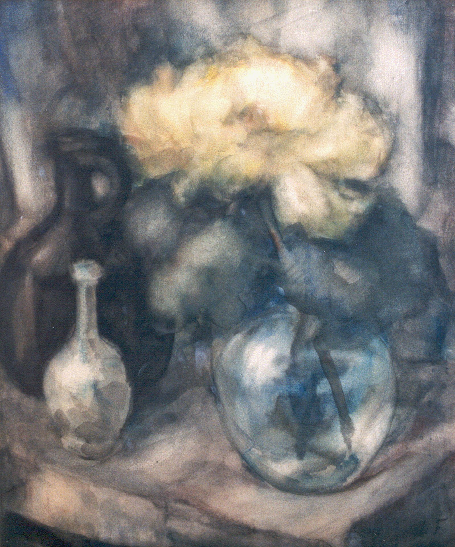 Henri Le Fauconnier kunstwerk • aquarel • tekening • voorheen te koop Stilleven met dahlia in een vaas