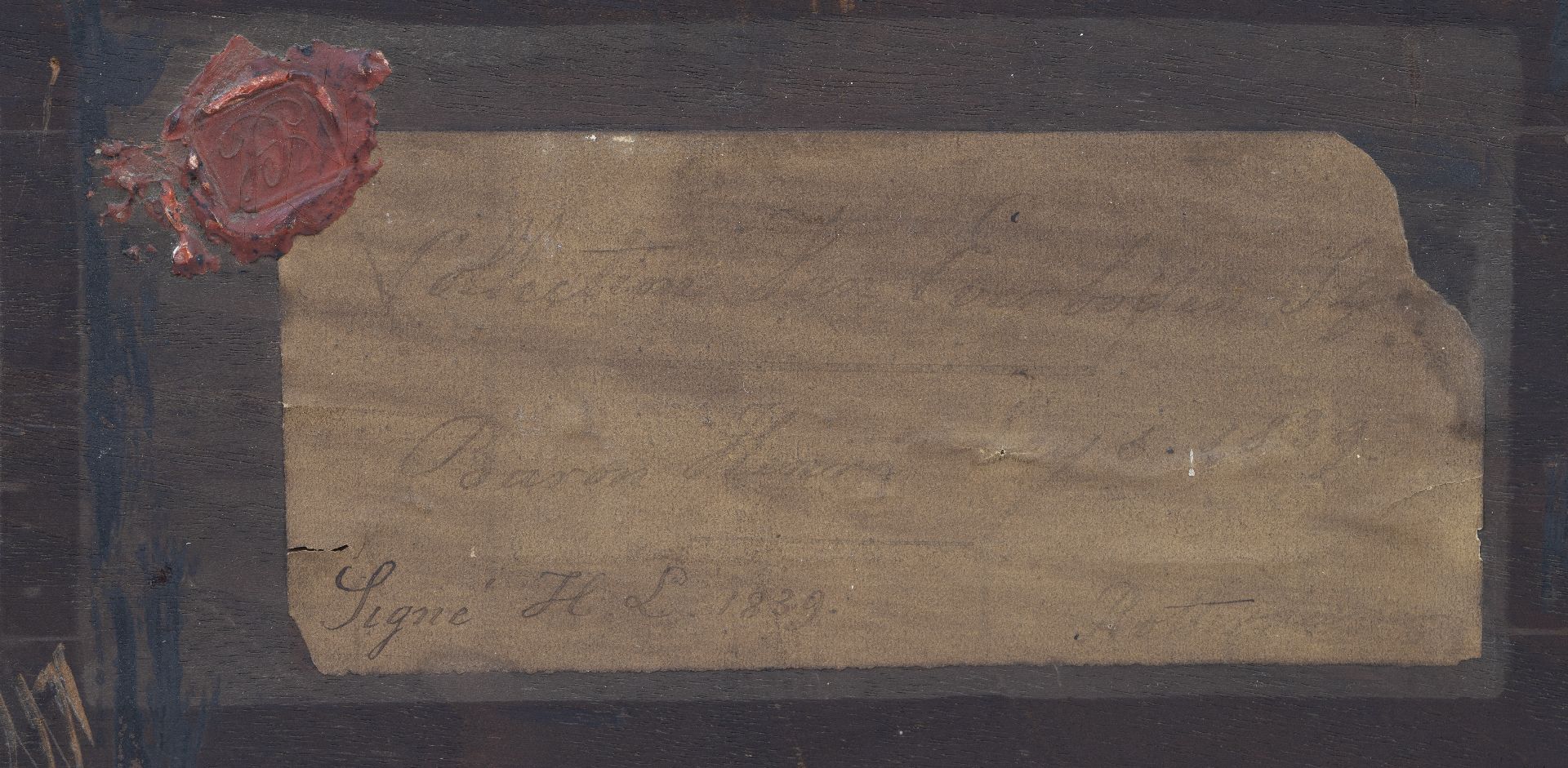 olieverf op paneel 27,7 x 34,1 cm, gesigneerd linksonder met monogram en gedateerd 1839
