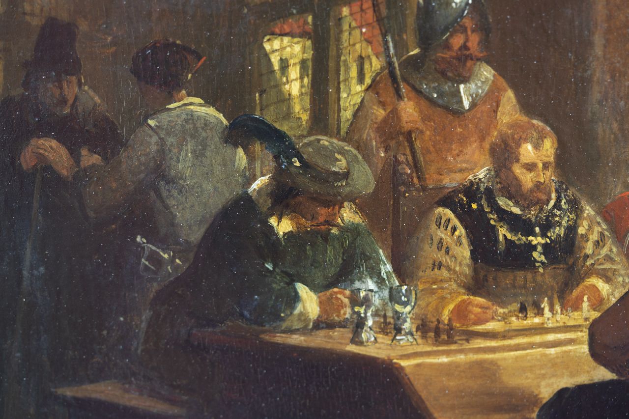 Henri Leys kunstwerk • schilderij • voorheen te koop Karel V verdiept in een schaakpartij