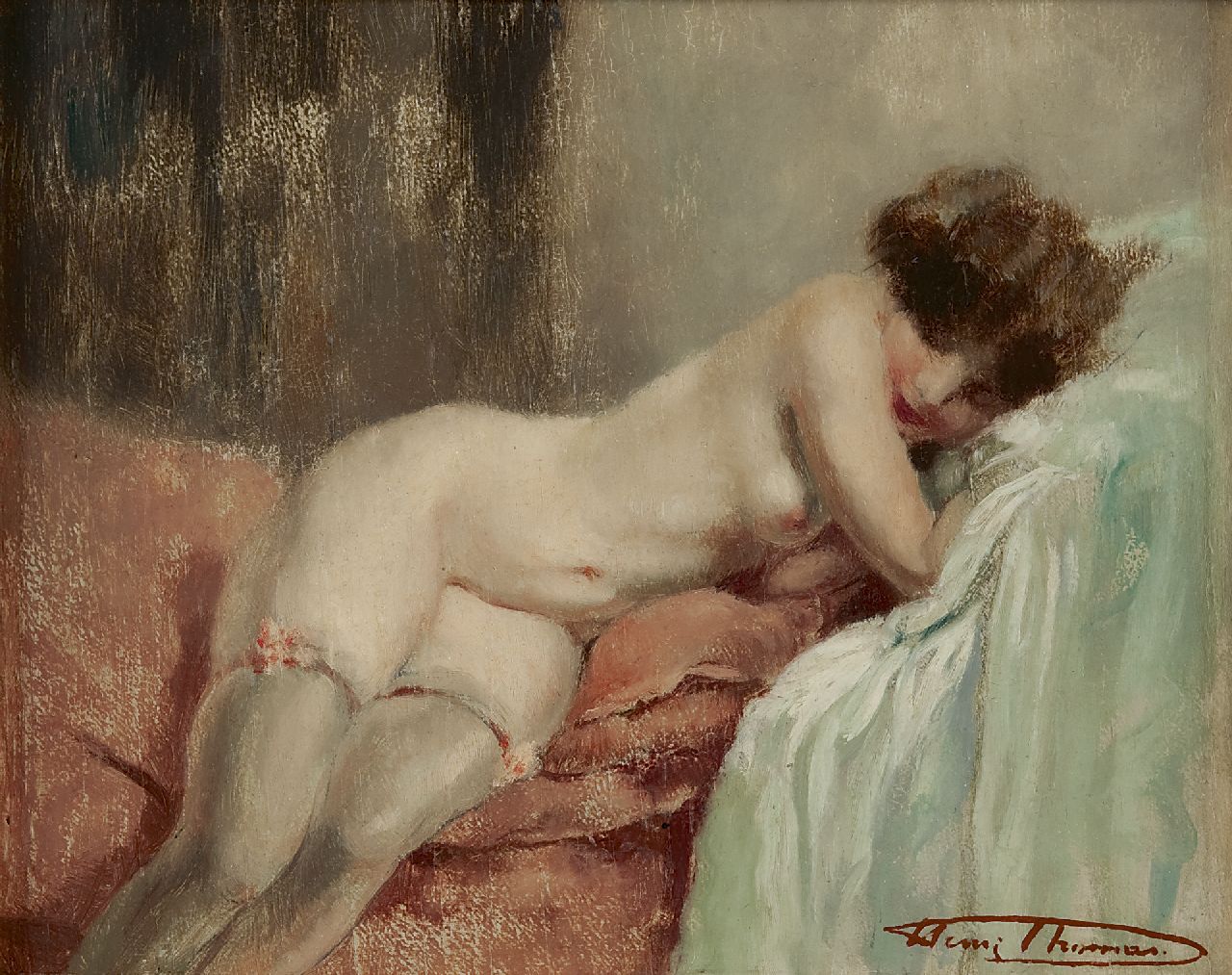 Henri Thomas kunstwerk • schilderij • voorheen te koop Naakt op divan