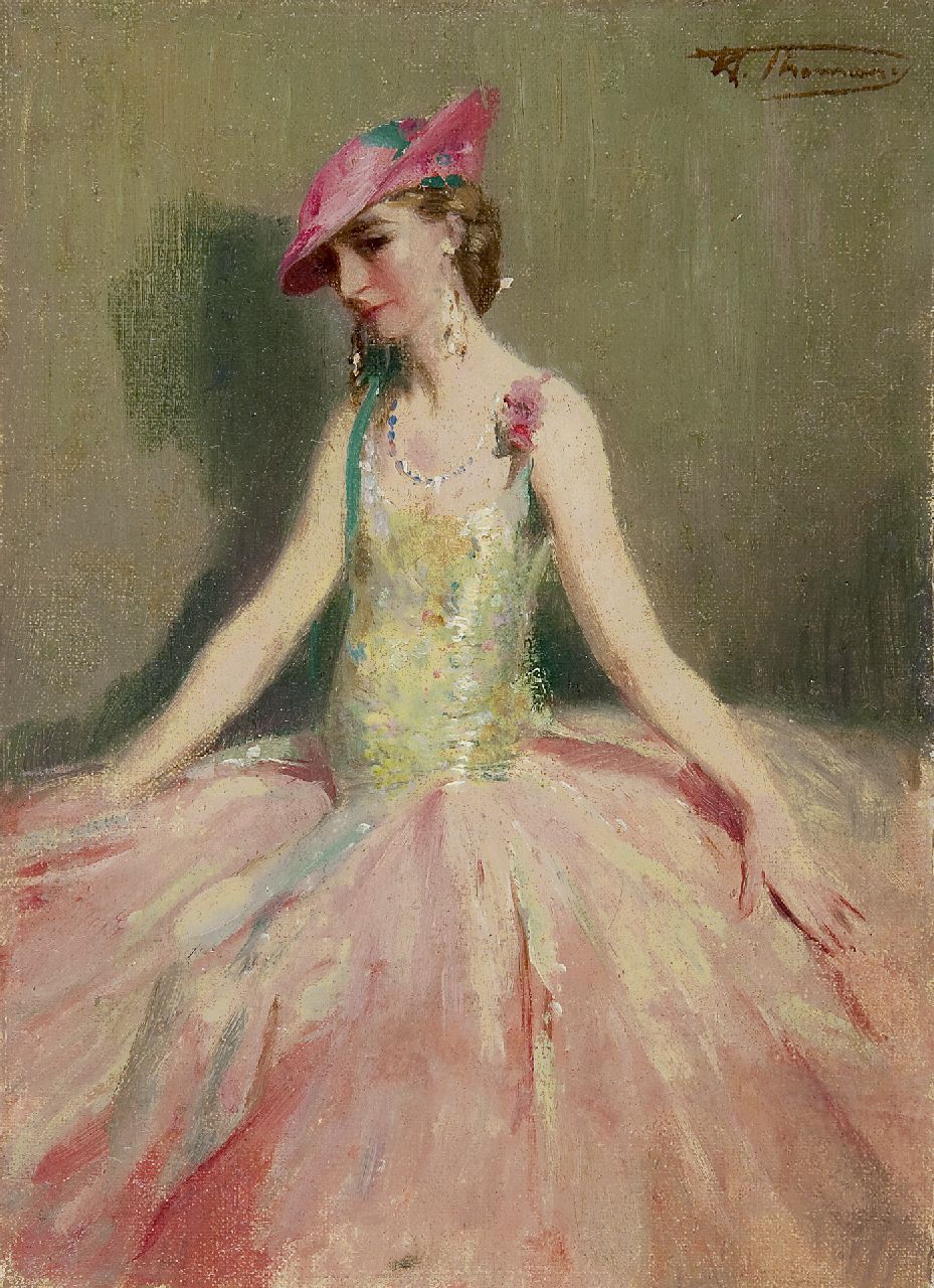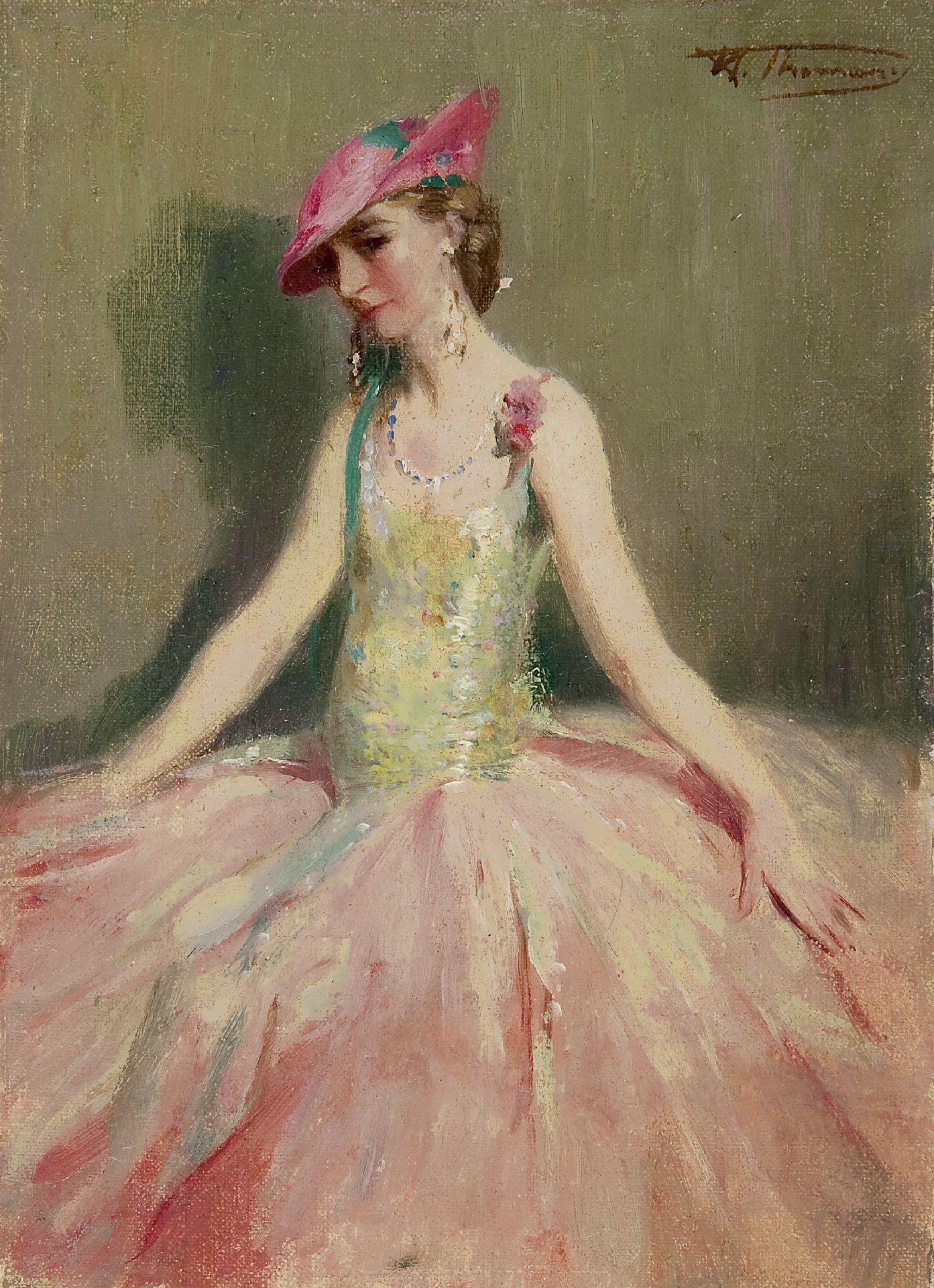 Henri Thomas kunstwerk • schilderij • voorheen te koop Vrouw in baltoilet