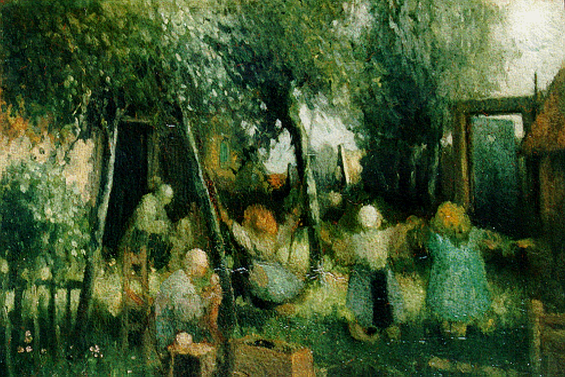 Henri van Daalhoff kunstwerk • schilderij • voorheen te koop Boerenlandschap met spelende kinderen