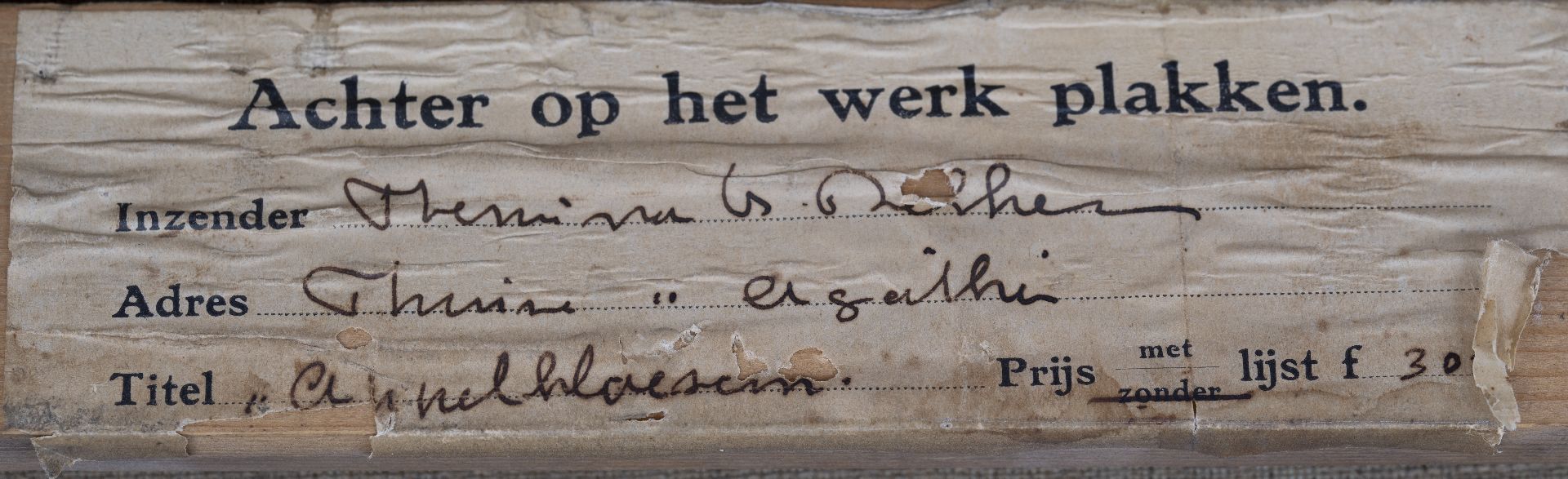 annotatie op etiket op spieraam: 'Appelbloesem'